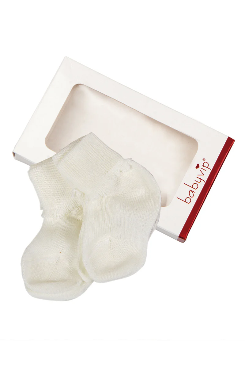 BabyVip: prodotto disegnato in Italia, curato nei minimi dettagli, per uno stile semplice e raffinato; Il calzino neonato BabyVip è realizzato con filati di cotone e altri materiali di elevata qualità; 100% cotone caldo; Taglia unica. Lavorazione a costine con risvolto.