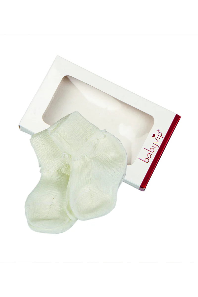 BabyVip: prodotto disegnato in Italia, curato nei minimi dettagli, per uno stile semplice e raffinato; Il calzino neonato BabyVip è realizzato con filati di cotone e altri materiali di elevata qualità; 100% cotone mercerizzato; Taglia unica. Lavorazione a costine con risvolto.