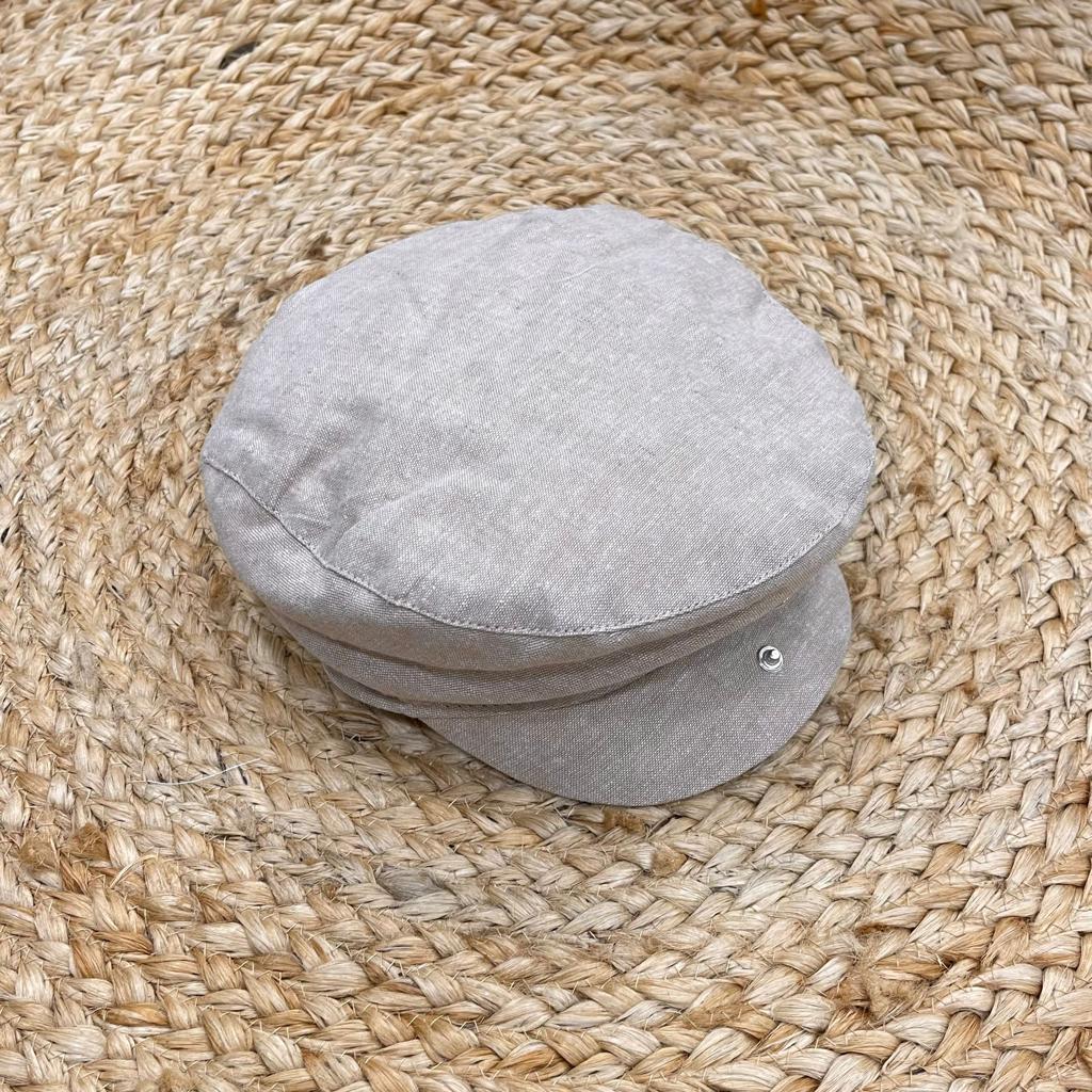 Coppola in lino foderata internamente con elastico sul retro e bottoncino sul davanti