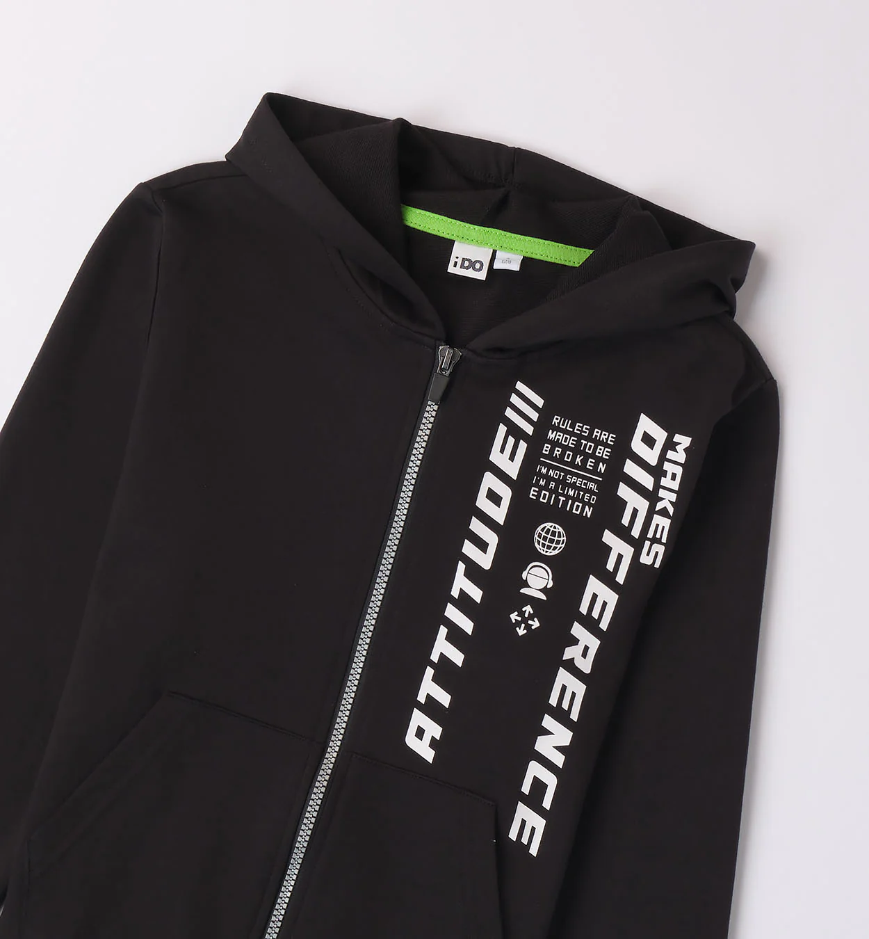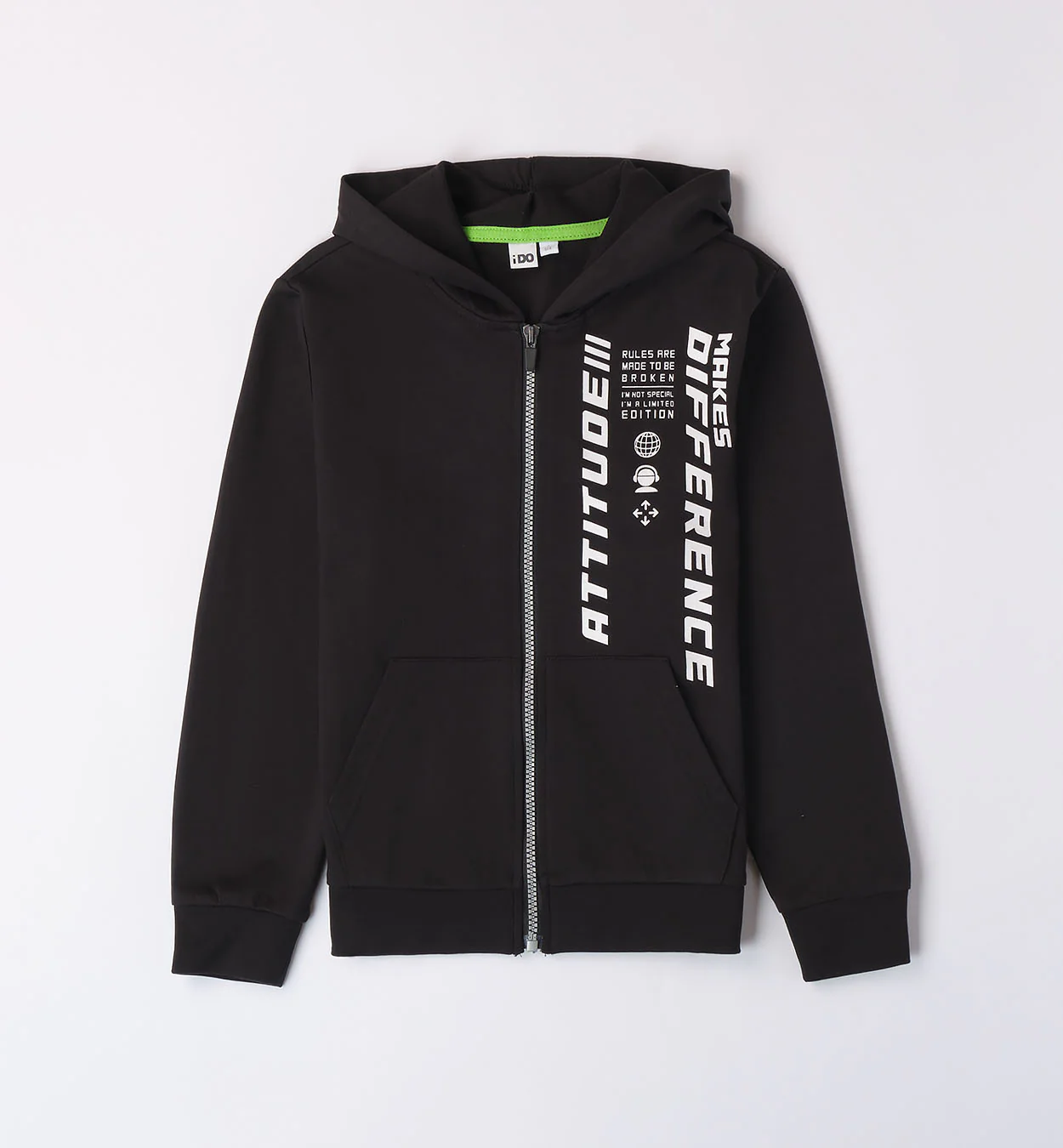 Felpa con chiusura a zip e cappuccio, in felpa leggera. Tema: Attitude Articolo: 48007.0658 BRAND – iDO