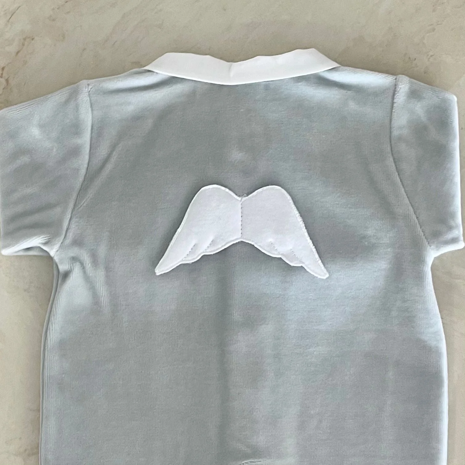 tutina in morbida ciniglia con ali sul retro