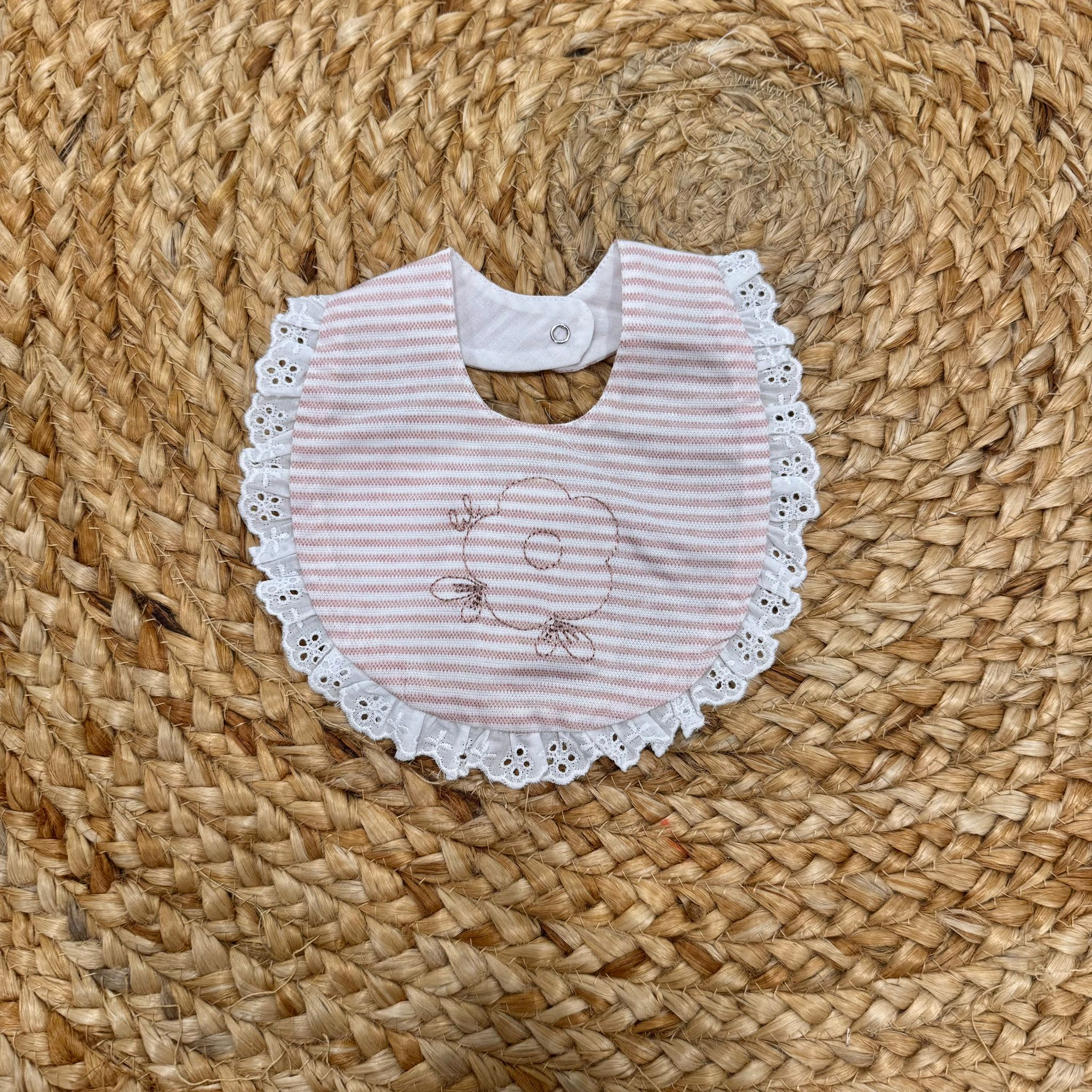 bavaglino a righe con bordo in sangallo