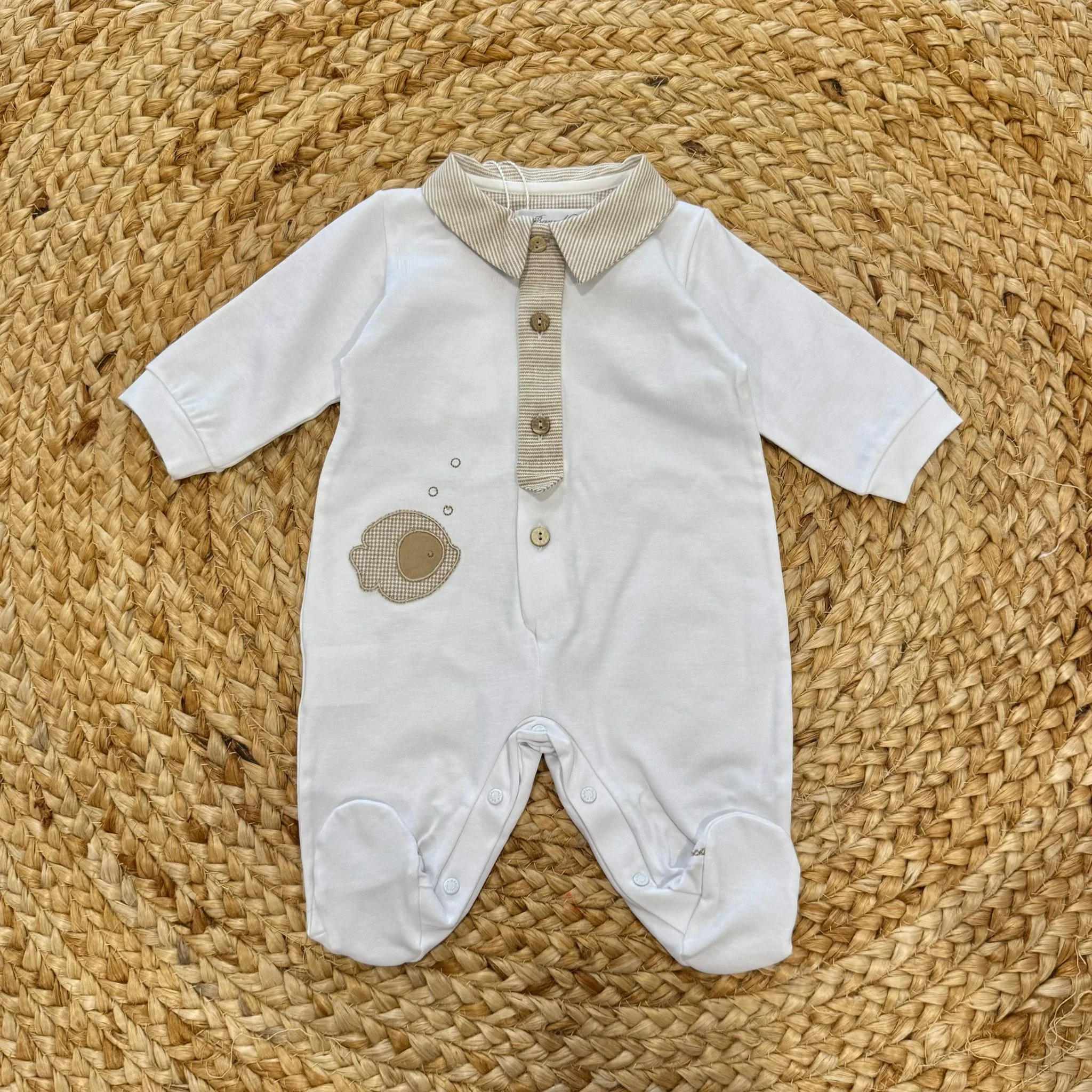 tutina in puro cotone con dettagli in beige e pesciolino100% cotonecodice: 120201