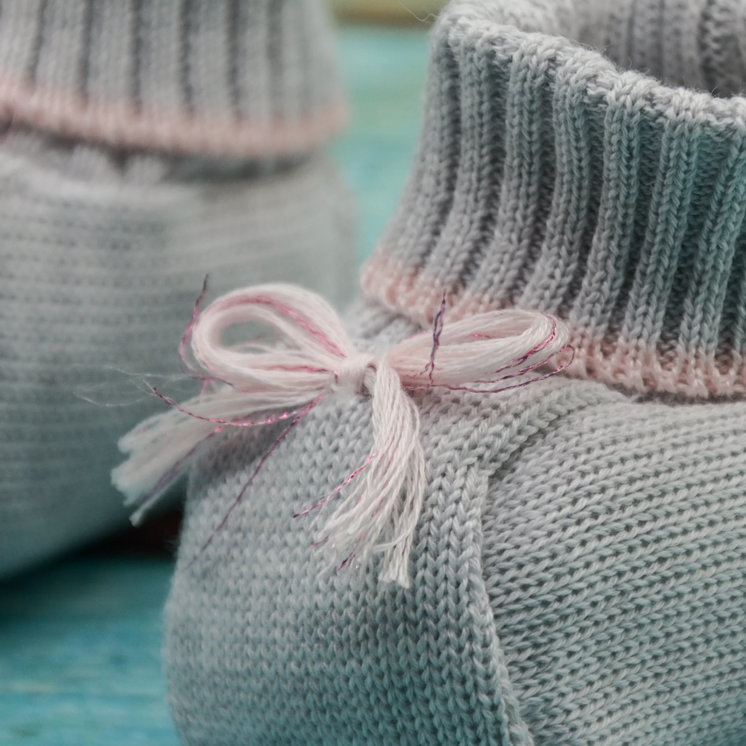 Scarpina in filo con fiocco. Composizione: 100%Cotone