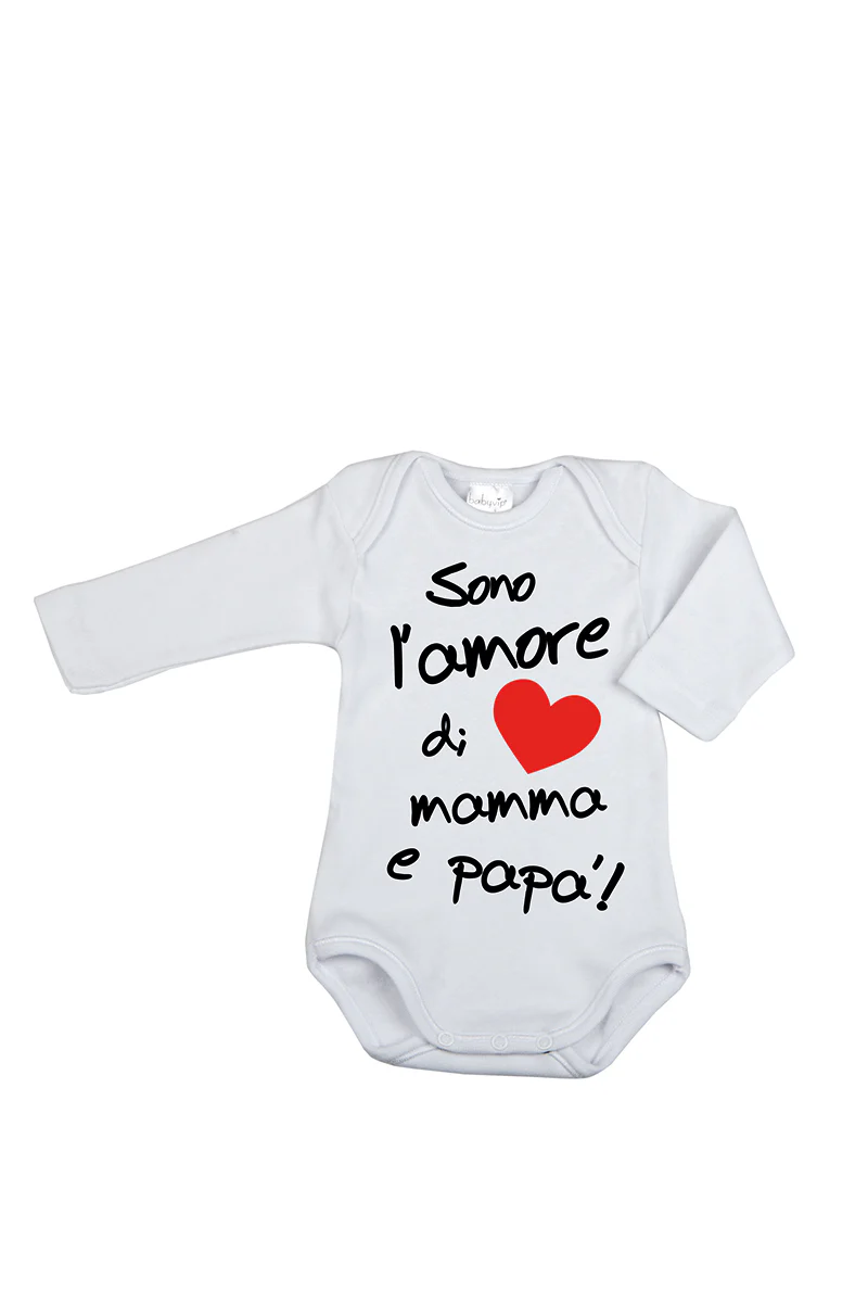 Body manica lunga con stampa “Sono l’amore di mamma e papà!”