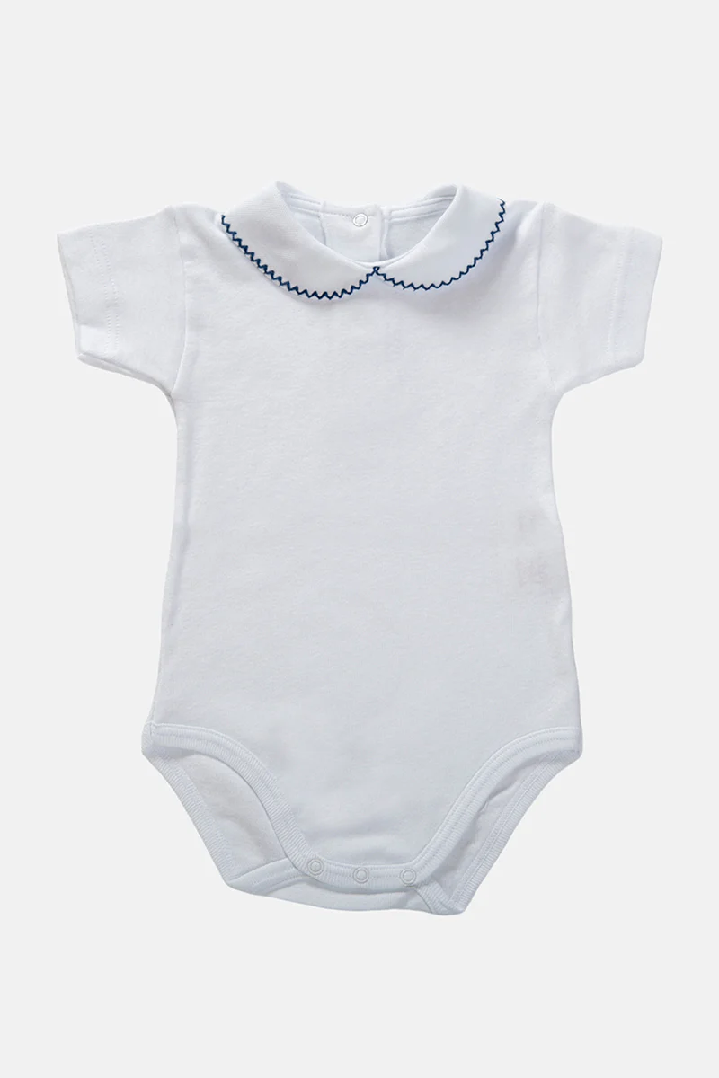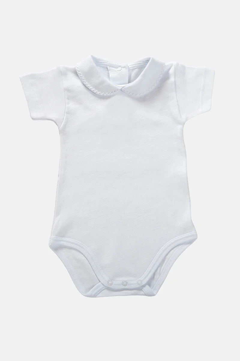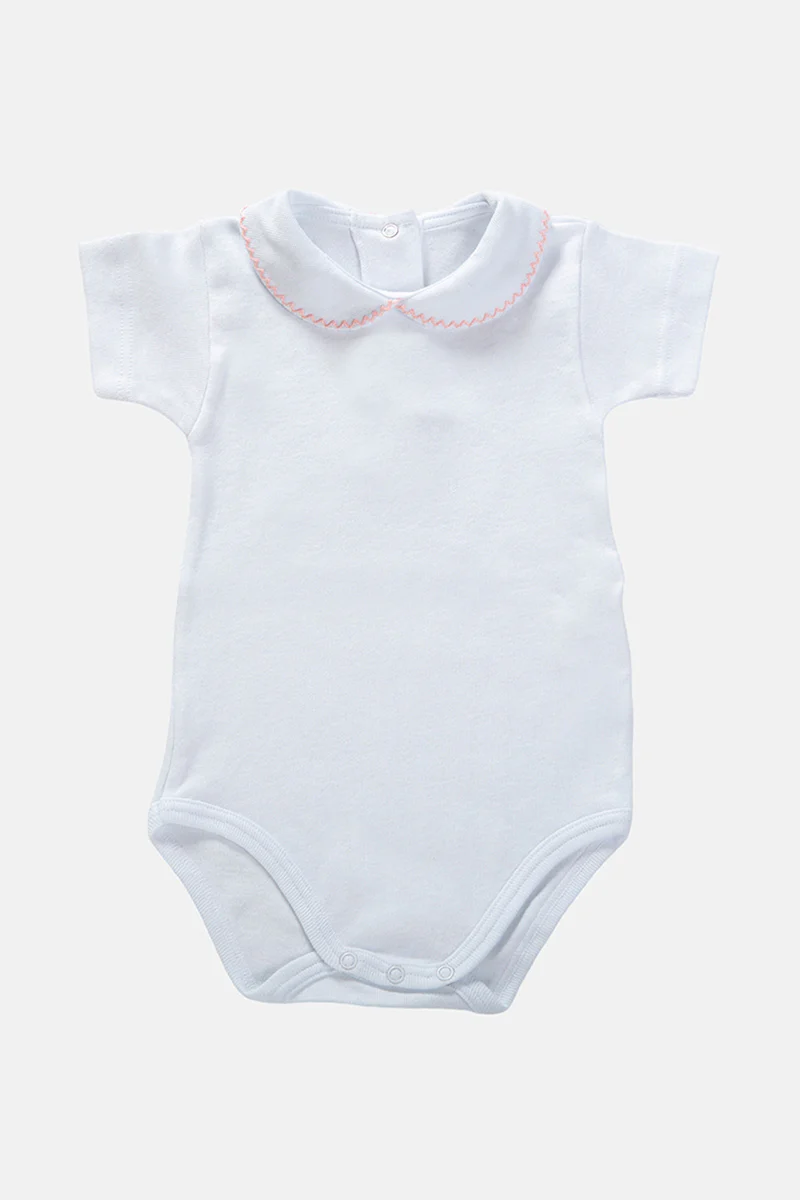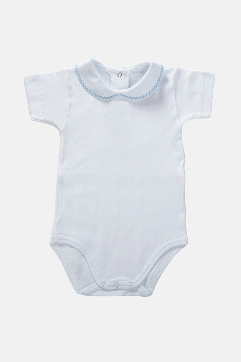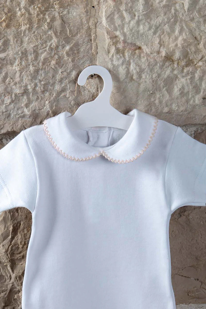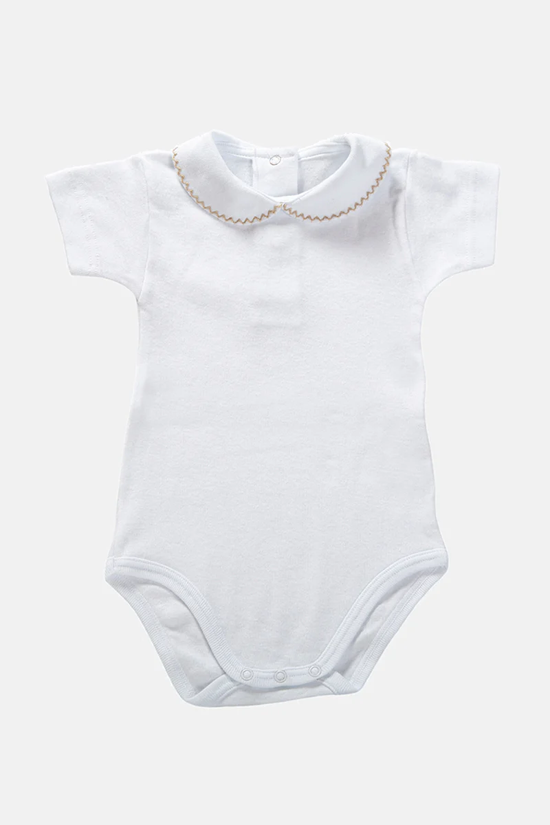 Body mezza manica in cotone con colletto in piquet e crocquette in contrasto