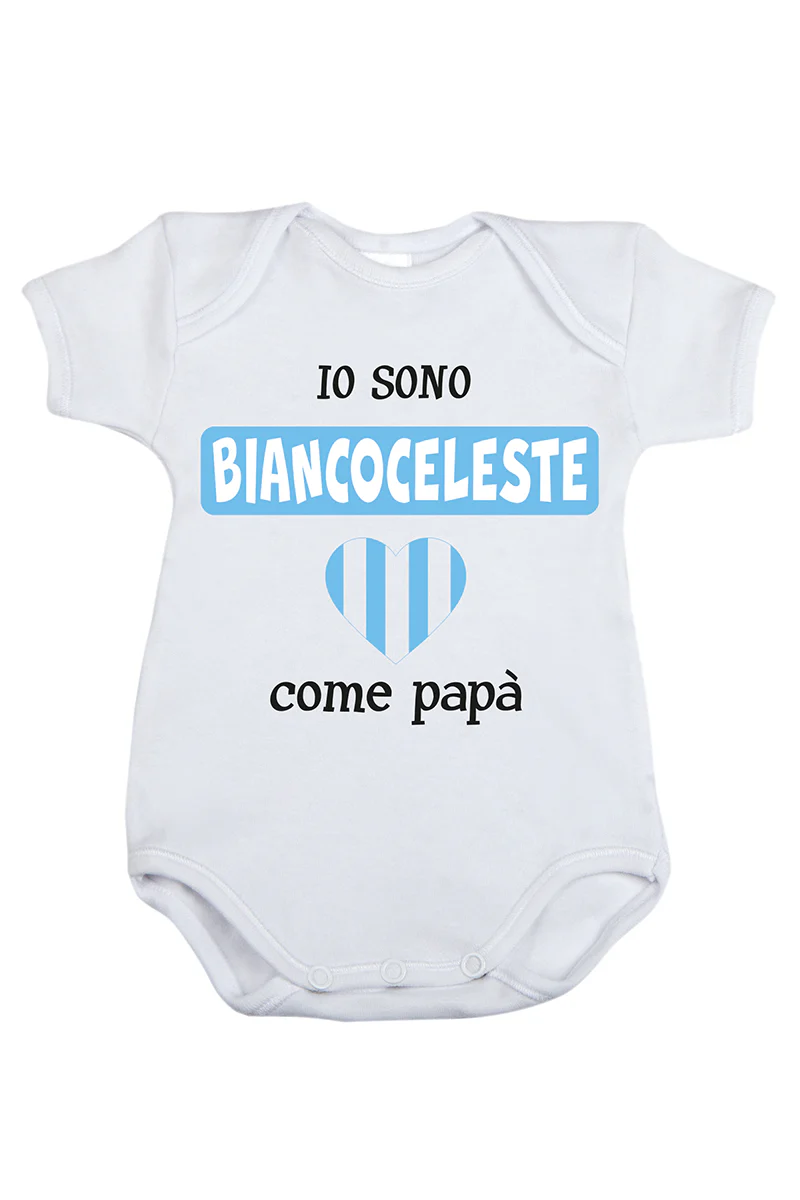 Body mezza manica in cotone con stampa “io sono biancoceleste come papà”