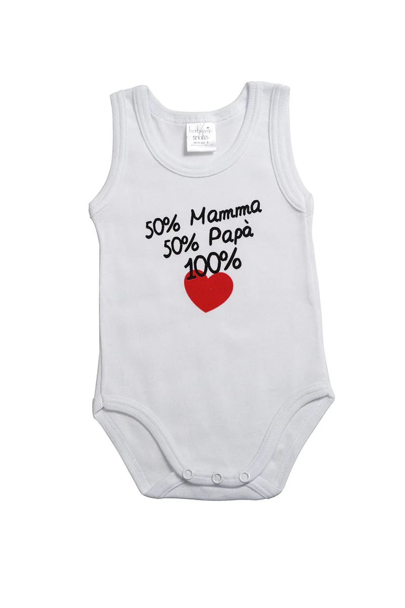 Body spalla larga con stampa “50% Mamma 50% Papà 100% Love”