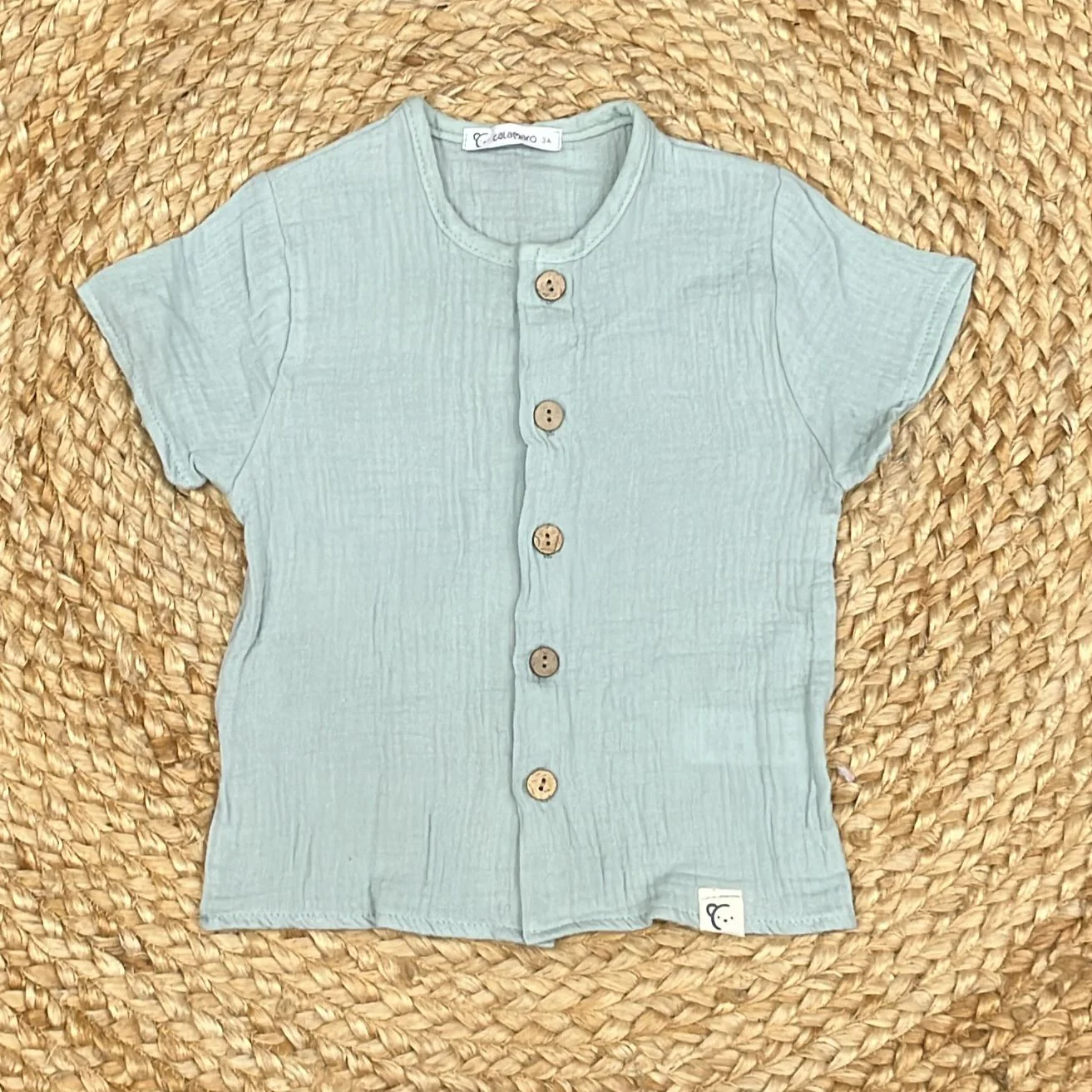 camicina in cotone organico con bottoncini in legno