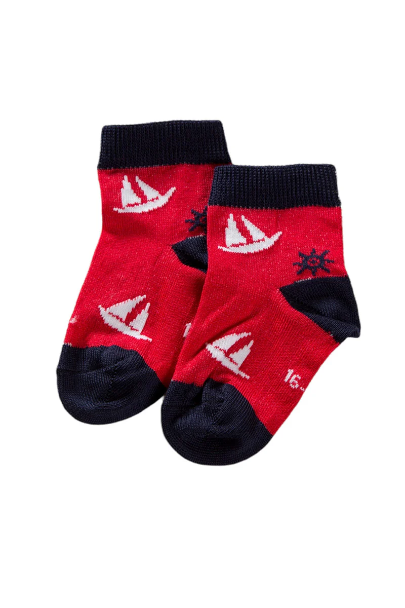 Calzino corto in cotone mercerizzato con fantasia barchetta