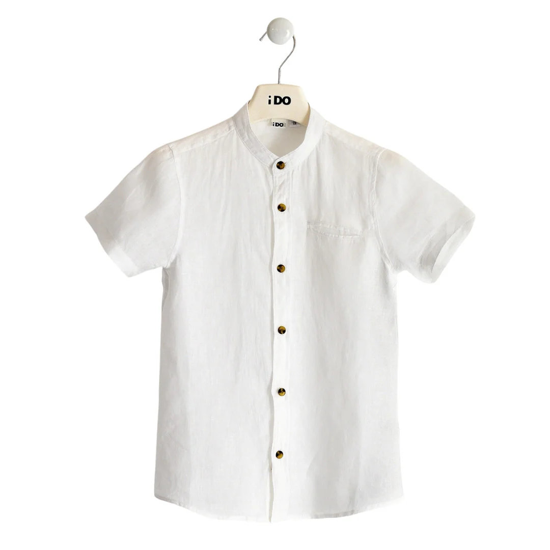 Camicia iDO a maniche corte con colletto alla coreana e taschino.