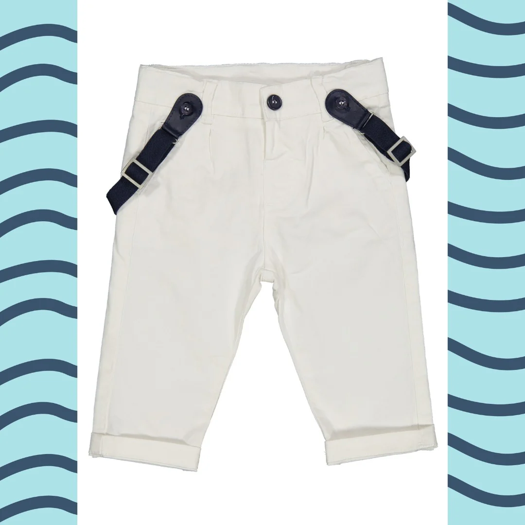 Pantaloni con bretelle in drill stretch, modello regular fit. Tema: CERIMONIA PRIMAVERA Articolo: 999.22001.00.15A BRAND – Birba