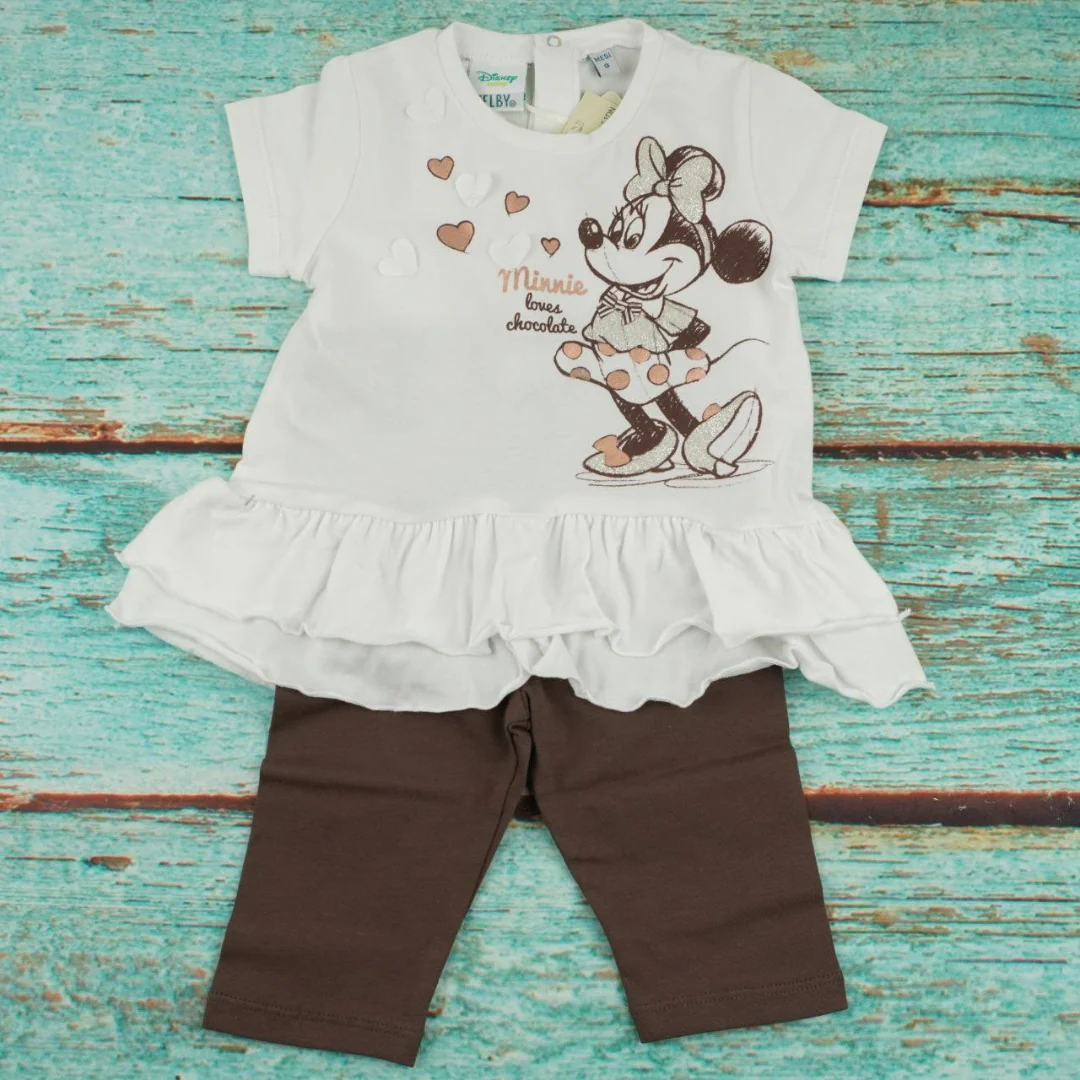Completo 2 pezzi in cotone a manica lunga in piquet con ricamo