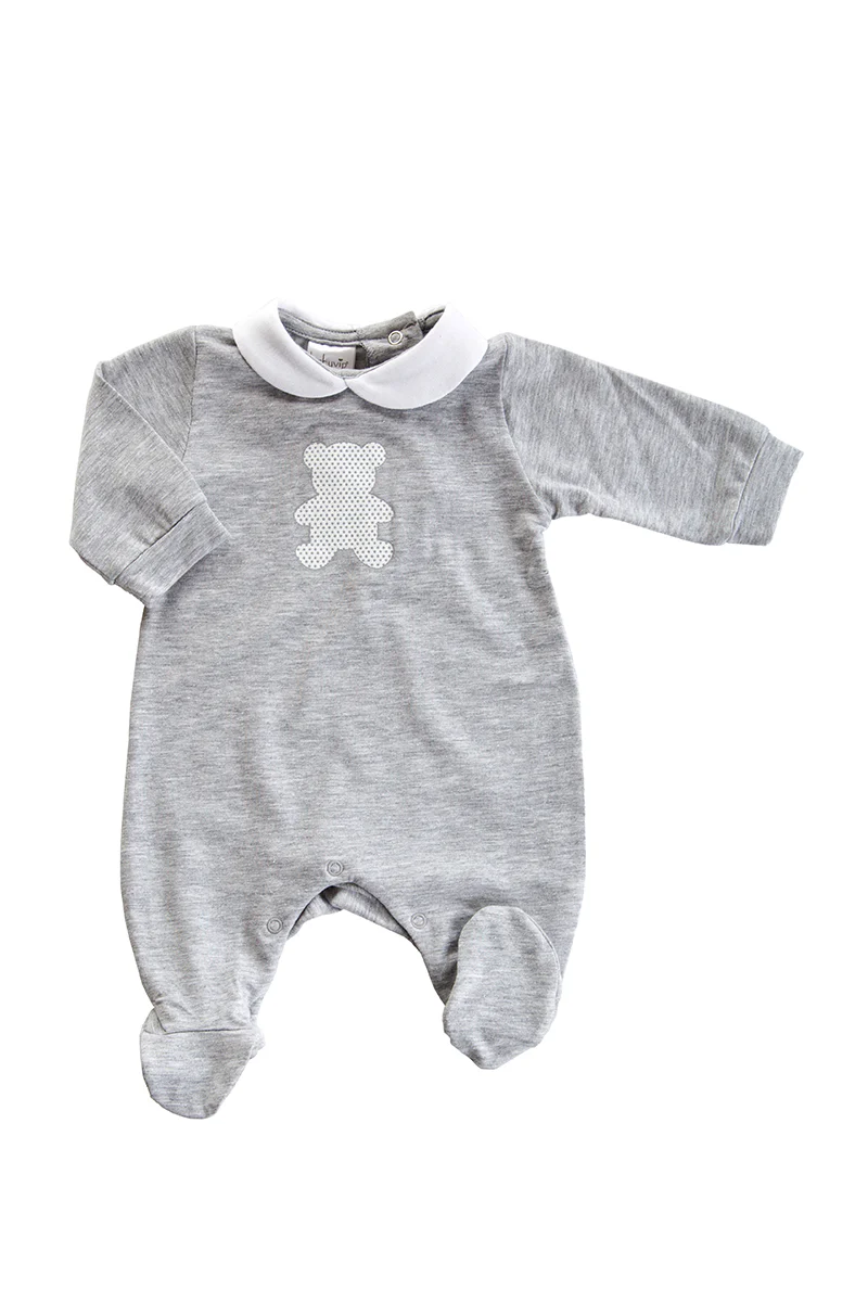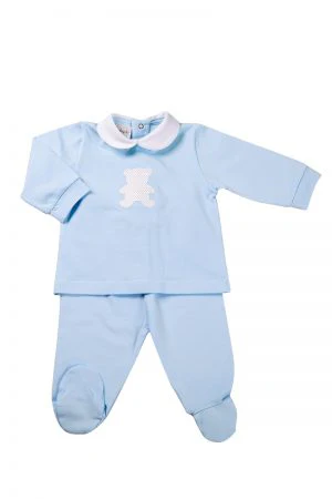 Completo 2 pezzi in cotone a manica lunga in piquet con ricamo