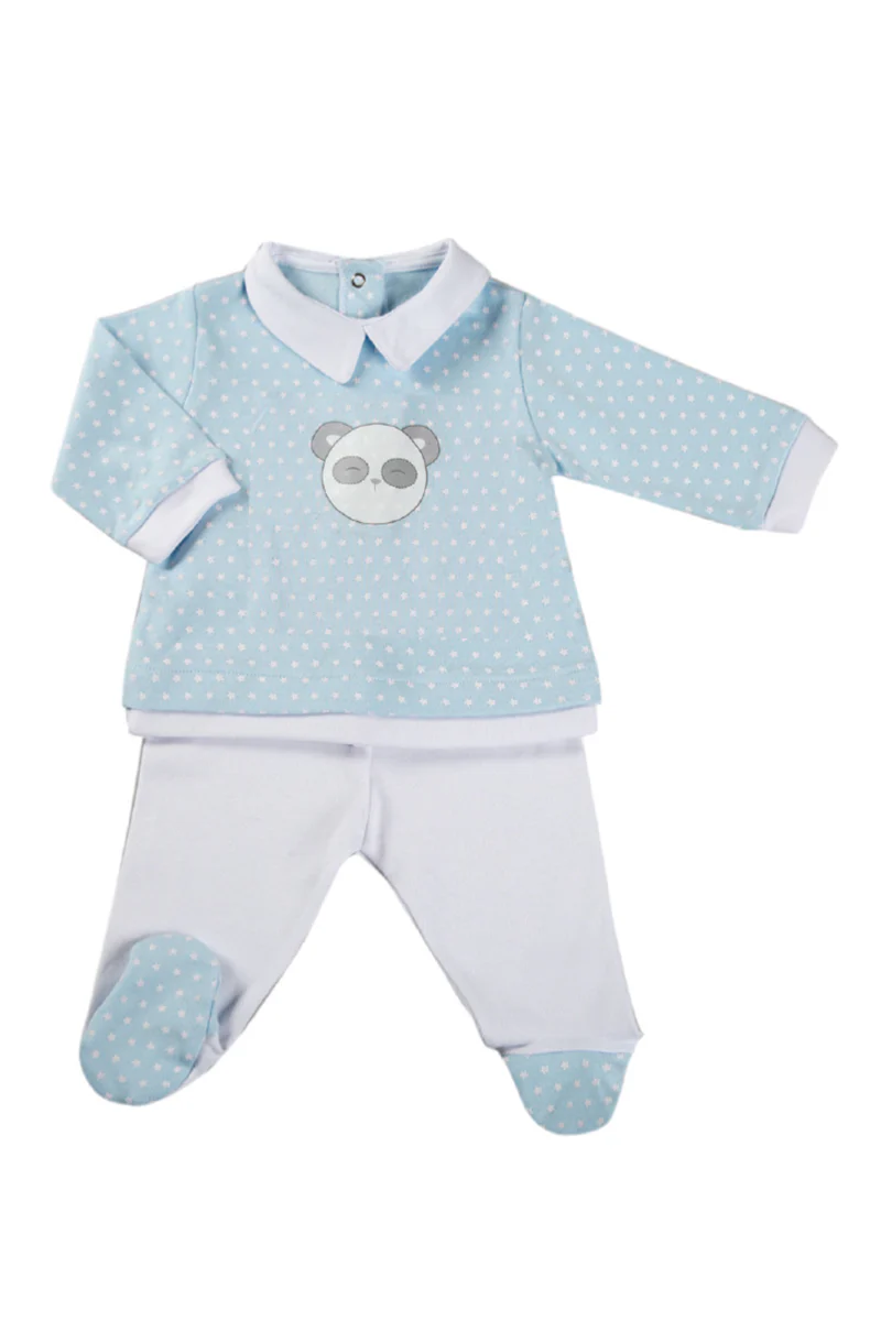 Completo 2 pezzi in cotone a manica lunga in piquet con ricamo