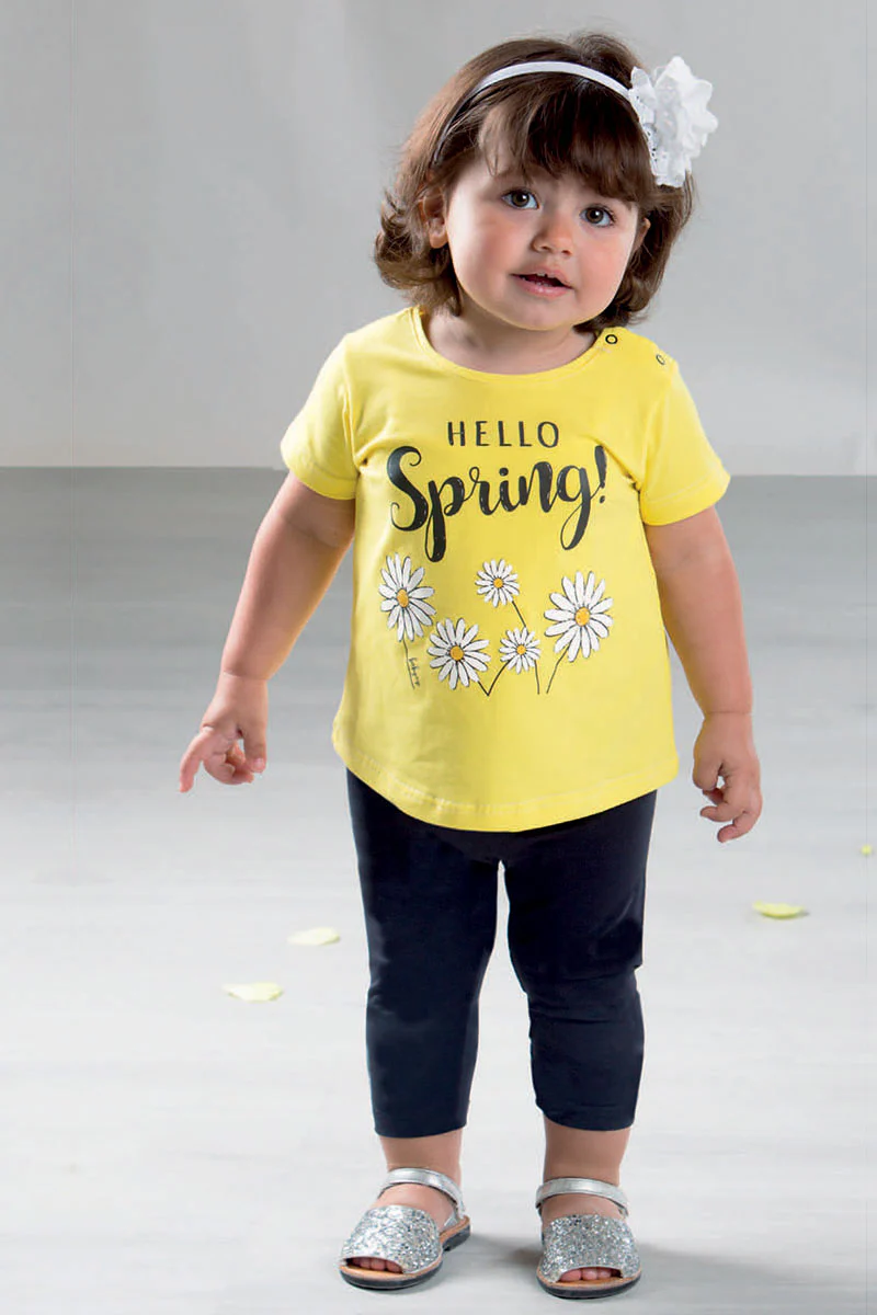 Completo in cotone elasticizzato con stampa, e leggings in contrasto