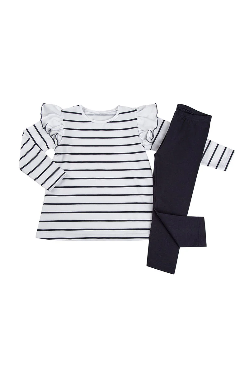 Completo manica lunga in cotone elasticizzato rigato con leggings in contrasto