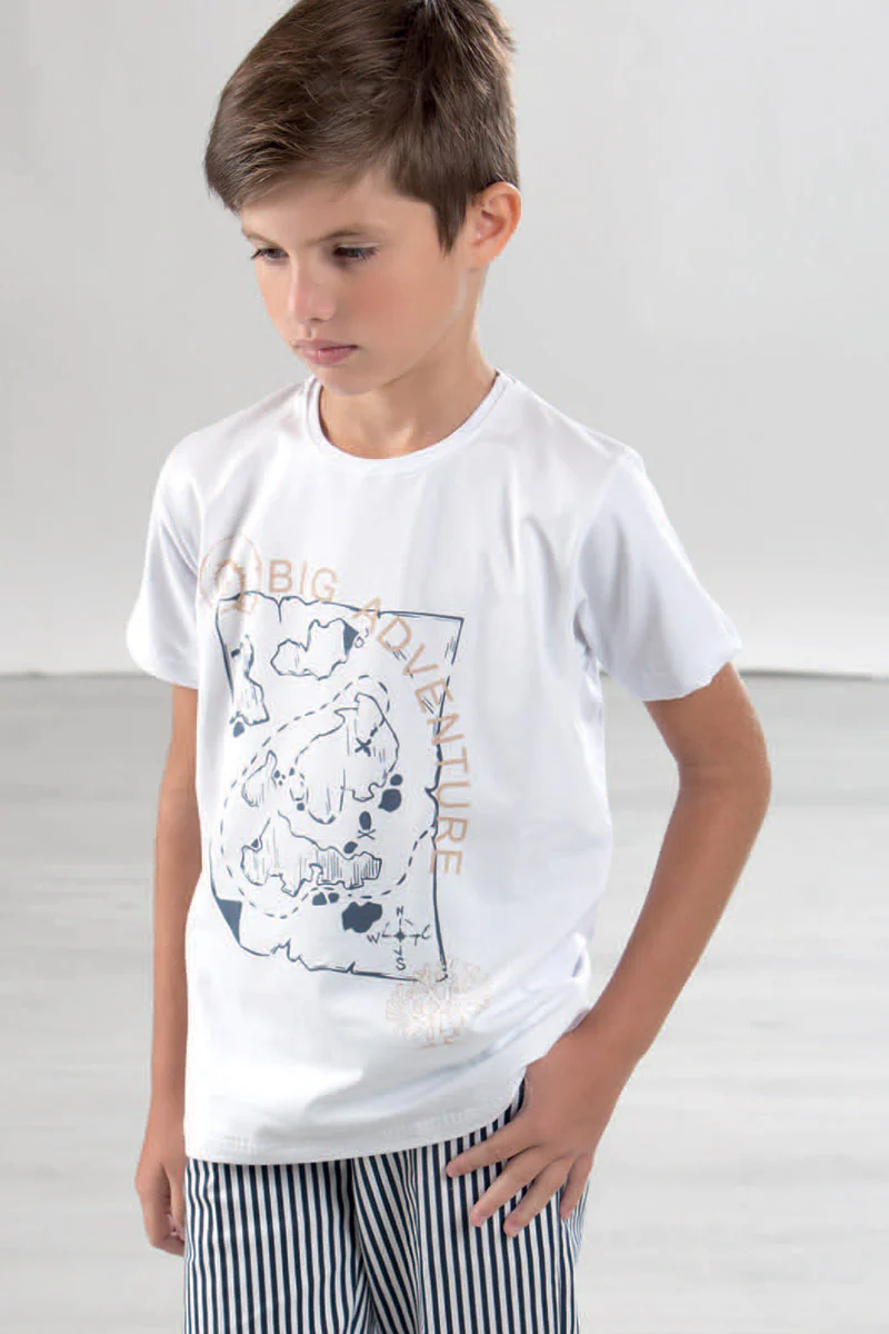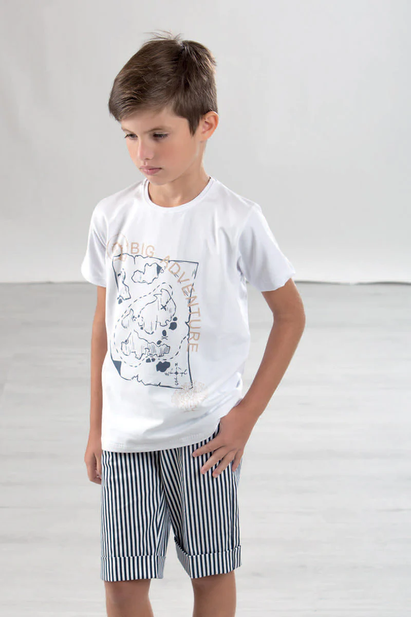 Completo mezza manica con bermuda rigati in cotone elasticizzato con stampe e risvolti