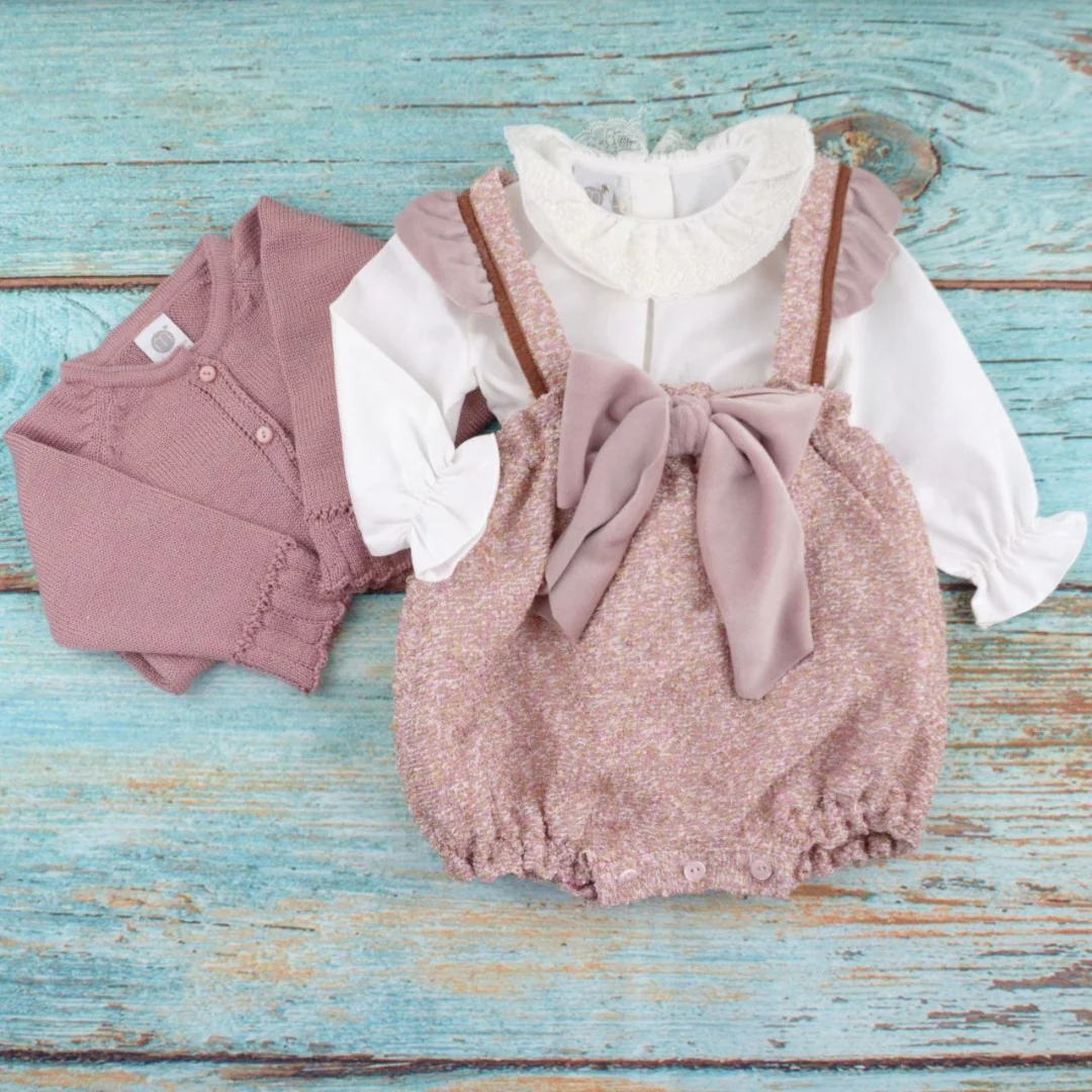 Aggiungi un tocco di stile regale al guardaroba della tua piccola principessa con il nostro completo Marlu’. La salopette in buckler, foderata internamente in cotone al 100%, offre comfort e morbidezza. Un elegante fiocco in ciniglia color Marsala arricchisce la parte frontale della salopette, mentre sulle bretelle troverai una delicata rouge dello stesso tessuto. Il giacchino in 100% lana color melograno aggiunge calore e raffinatezza al look, mentre la camicia bianco latte, con apertura posteriore e colletto lavorato in pizzo, dona un tocco di eleganza. Con il nostro completo Marlu’, la tua piccola principessa sarà vestita con stile e raffinatezza, catturando l’attenzione in ogni occasione.