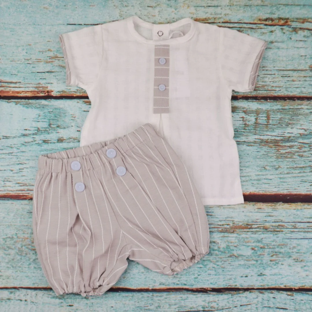 Completo composto da maglia in tessuto goffrato e pantalone misto cotone rigato. Articolo: CC4880 BRAND – Teto e Tatta