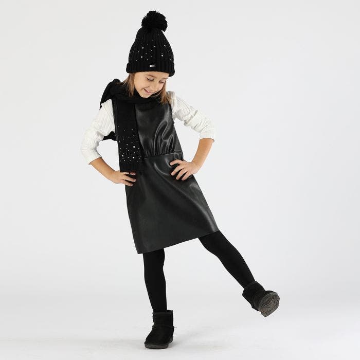 Abito smanicato in ecopelle.