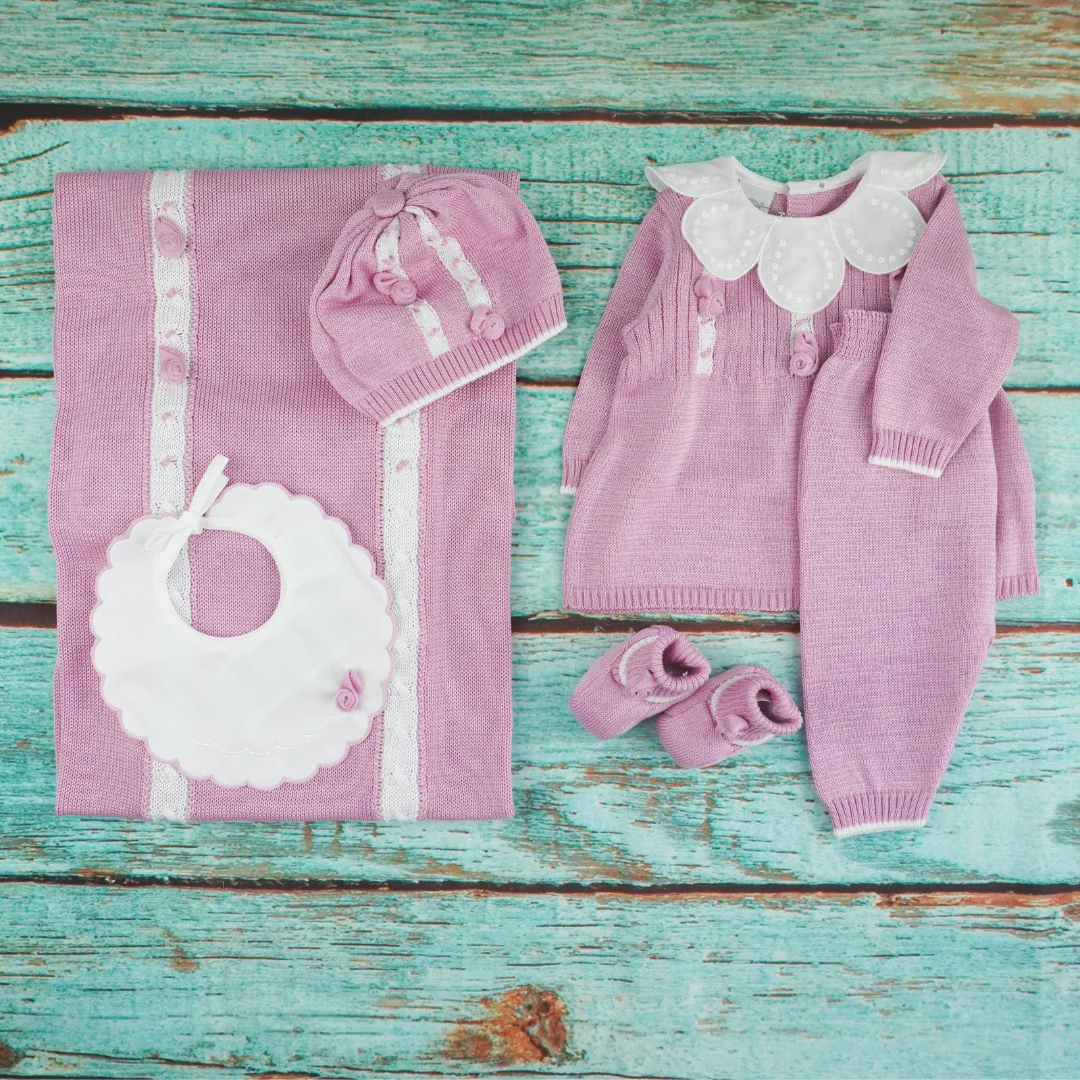 Vesti la tua dolce principessa con eleganza e raffinatezza con la nostra esclusiva tutina a due pezzi in cotone di filo di alta qualità. Il colletto a forma di fiore, finemente ricamato, aggiunge un tocco di grazia e originalità, mentre le roselline sulla parte superiore della tutina creano un’atmosfera incantata. Completa il look con il cappellino, la bavetta, le scarpine e la copertina abbinati, per un outfit completo e impeccabile. Regala alla tua bimba un look unico e raffinato, perfetto per ogni occasione speciale. Acquista ora e preparati ad essere circondata da complimenti per lo stile impeccabile della tua piccola!