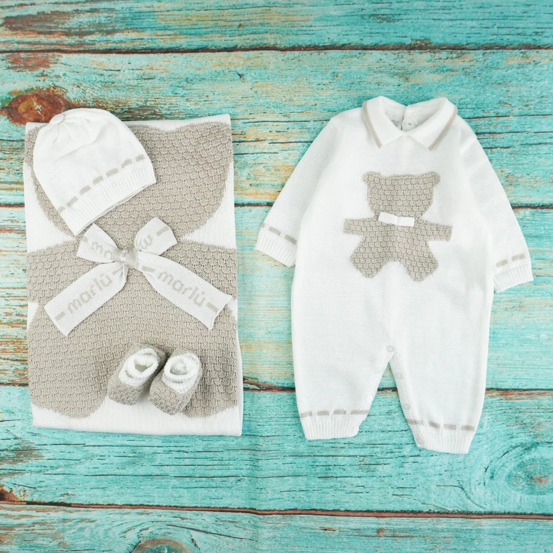 Meravigliosa copertina pregiata, realizzata con filo di ottima qualità e manifattura italiana. Il tenero disegno di un orsetto al centro della copertina aggiunge un tocco di dolcezza e grazia, mentre la lavorazione dettagliata e la cura artigianale garantiscono un capo di elevata qualità. Preparati ad accogliere il tuo bimbo con calore e stile in questa copertina esclusiva, perfetta per i momenti di coccole e relax.