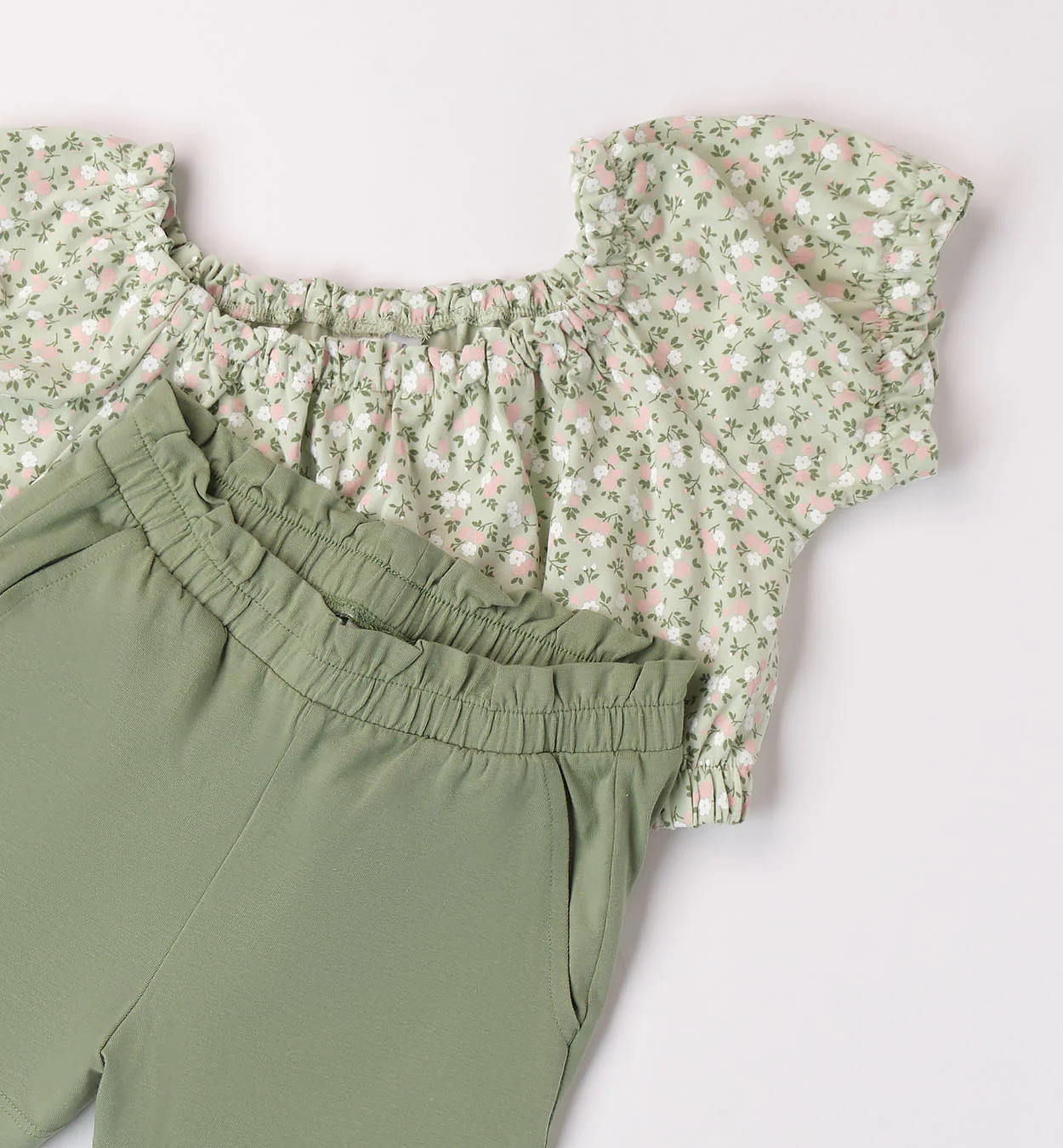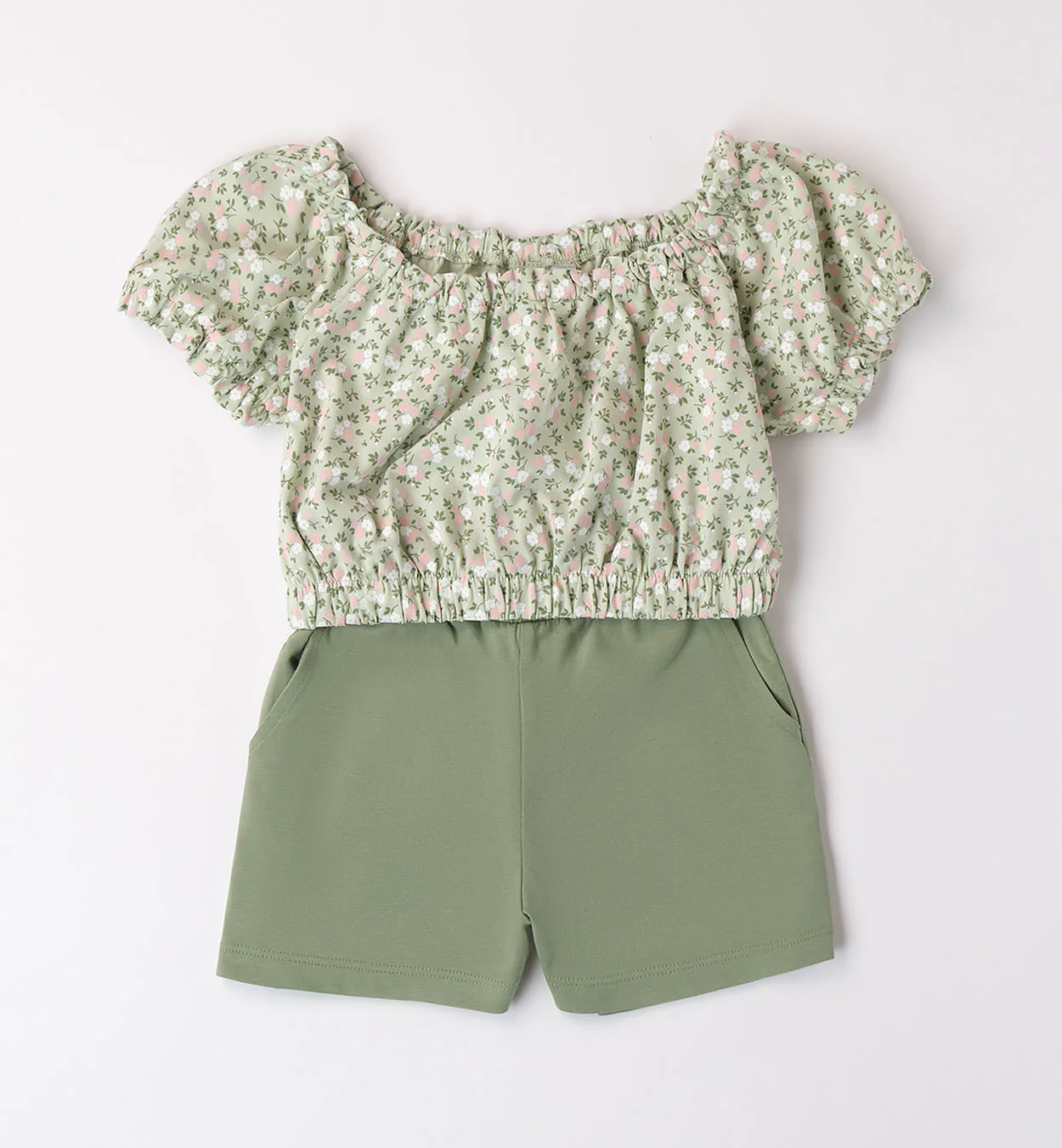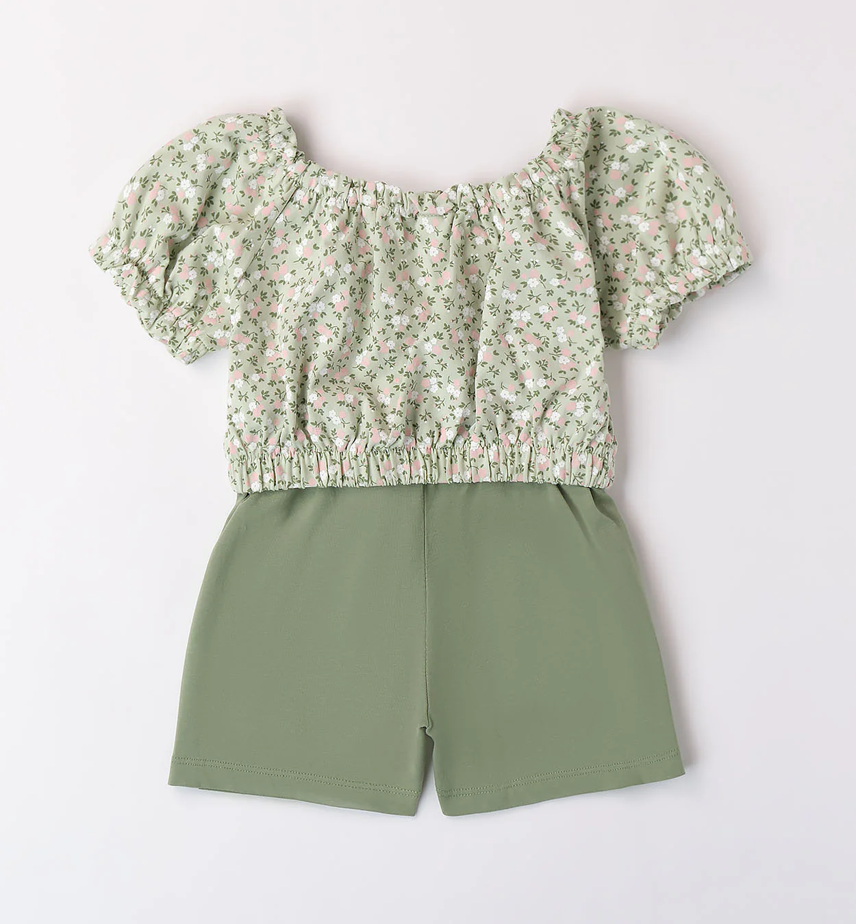 Completo composto da t-shirt a fiori e pantaloncino in tinta unita, in Jersey Stretch.