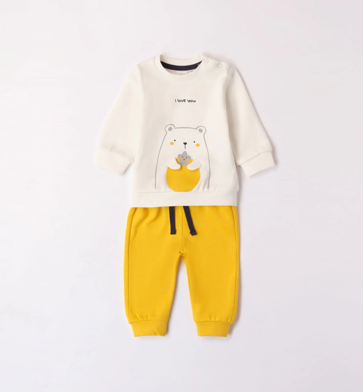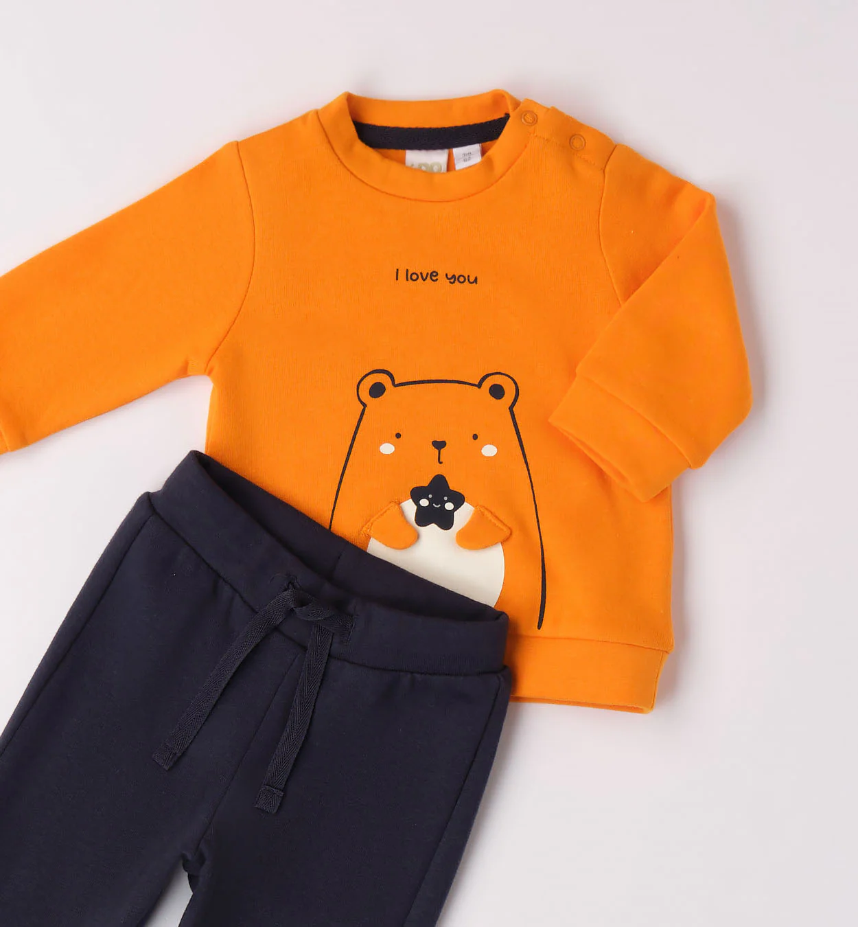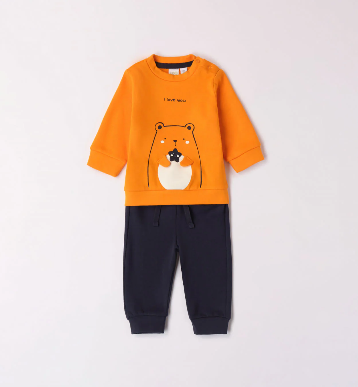 Completo Tuta iDO con felpa con stampa e pantalone tuta, in felpa stretch garzata.