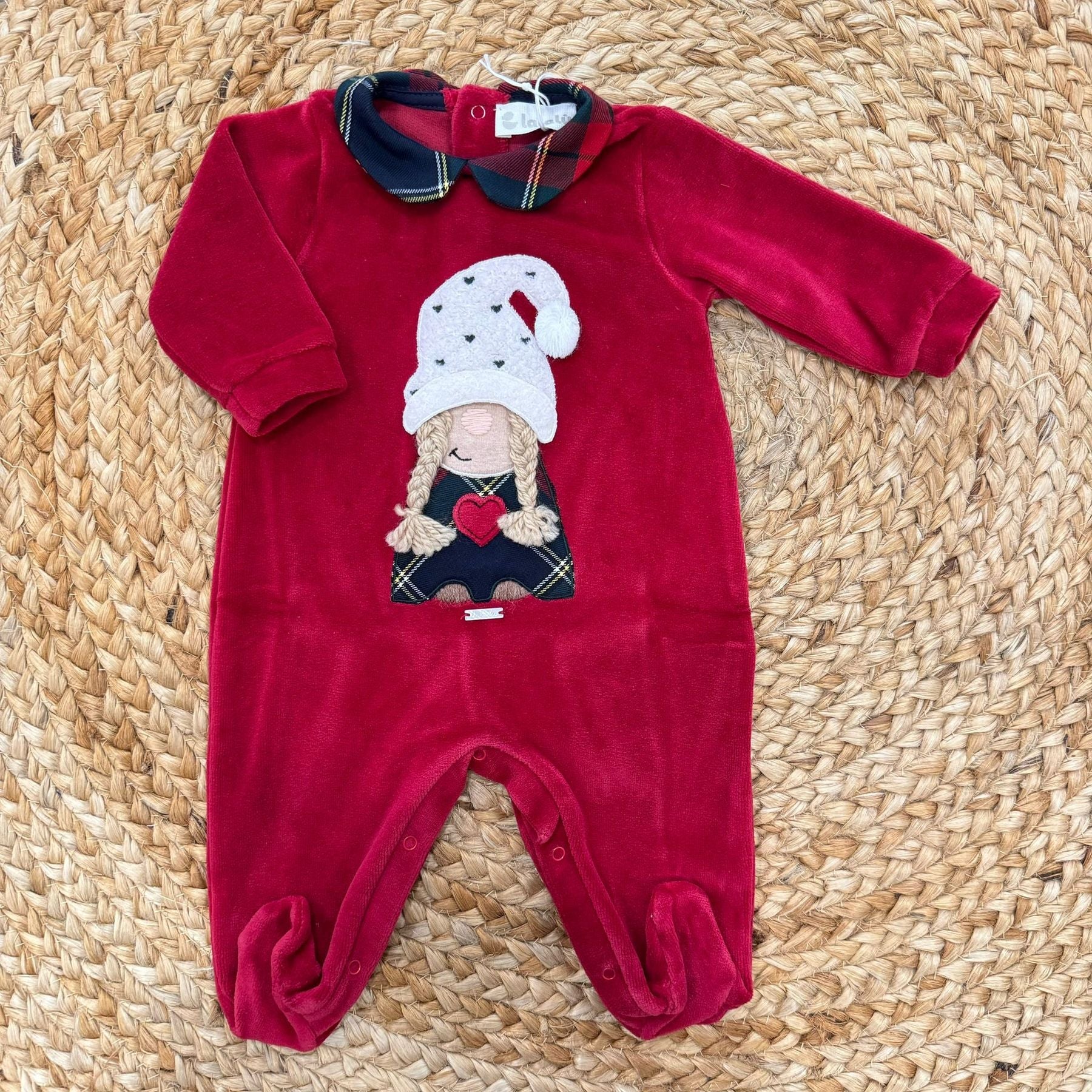 Tutina natalizia in morbida ciniglia con collo scozzese