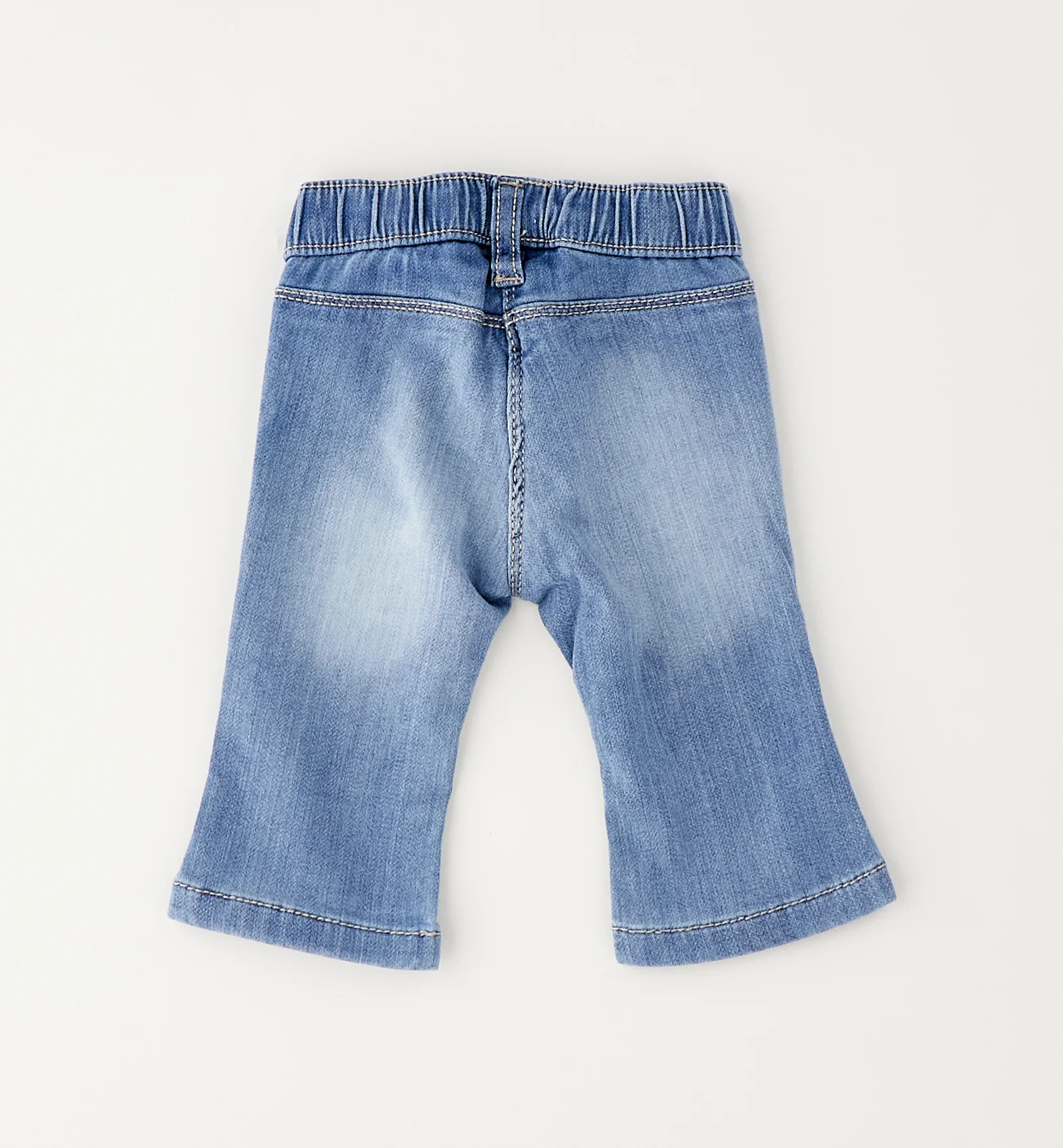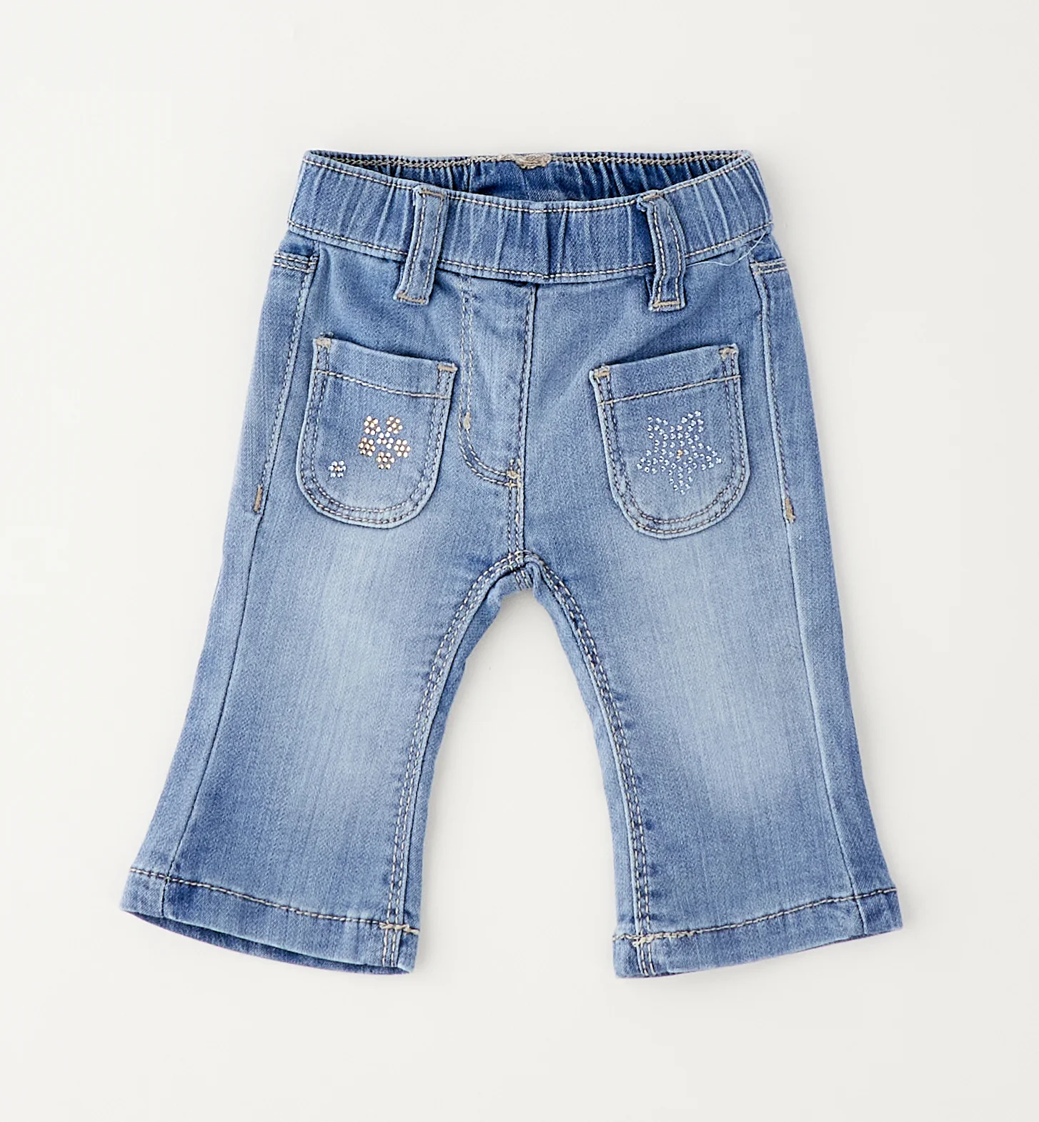 Pantalone in maglia denim con strass.