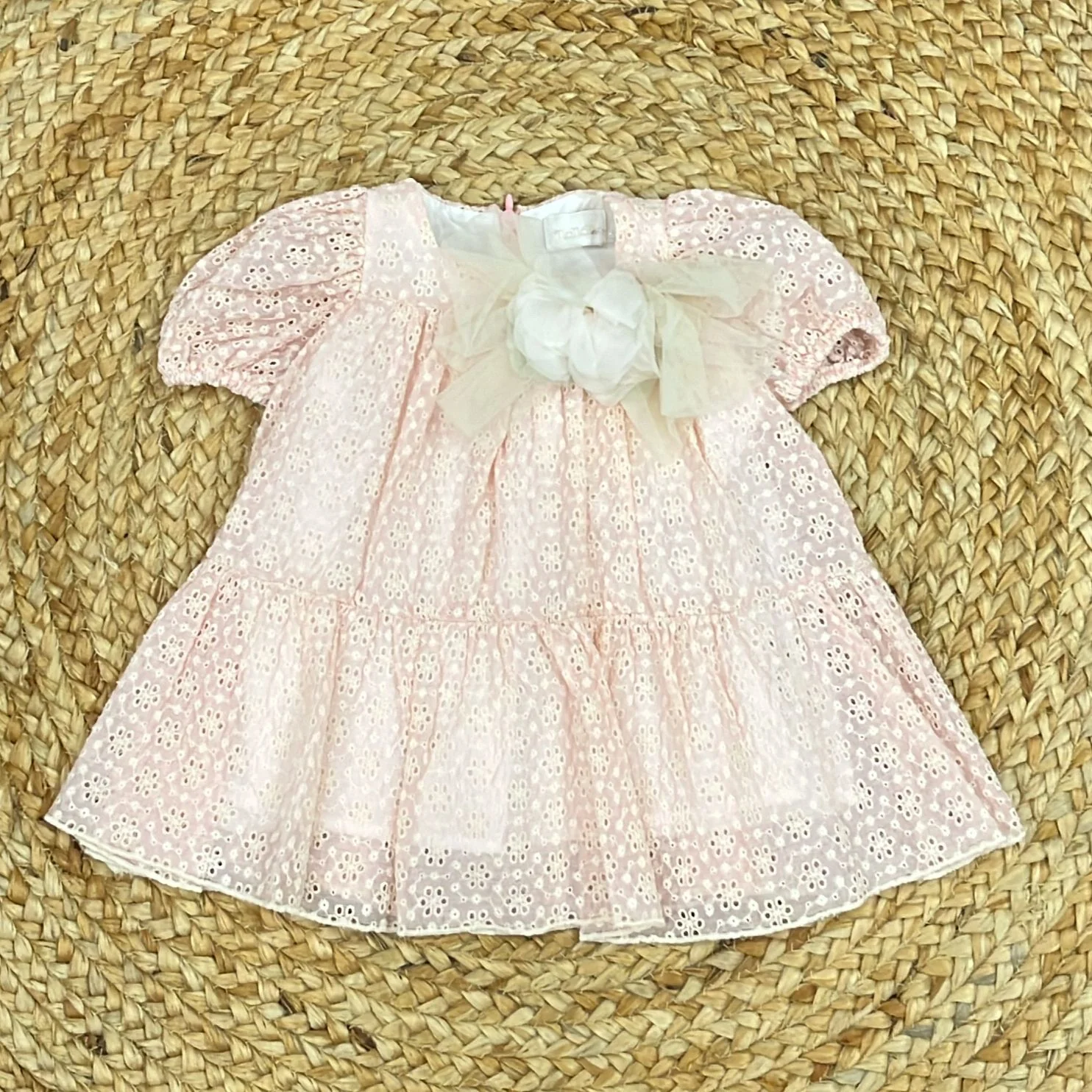 Abitino in sangallo con applicazioni in organza
