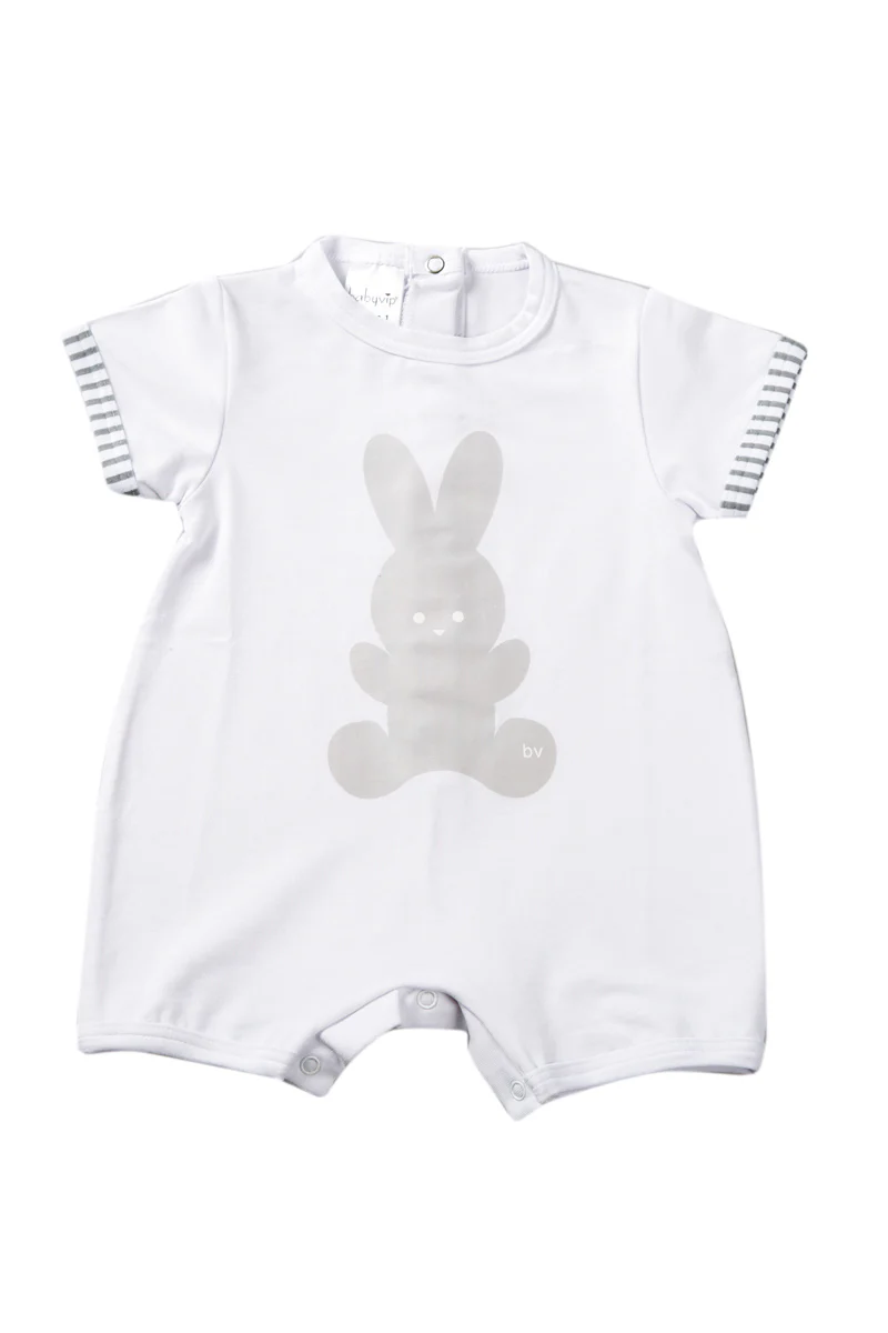 Pagliaccetto con stampa coniglietto e risvolti manica rigati.