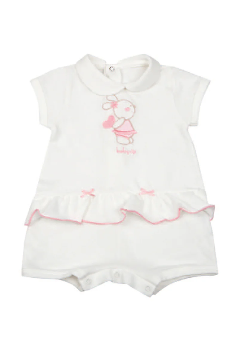 Pagliaccetto in piquet con ricamo orsetto e balza