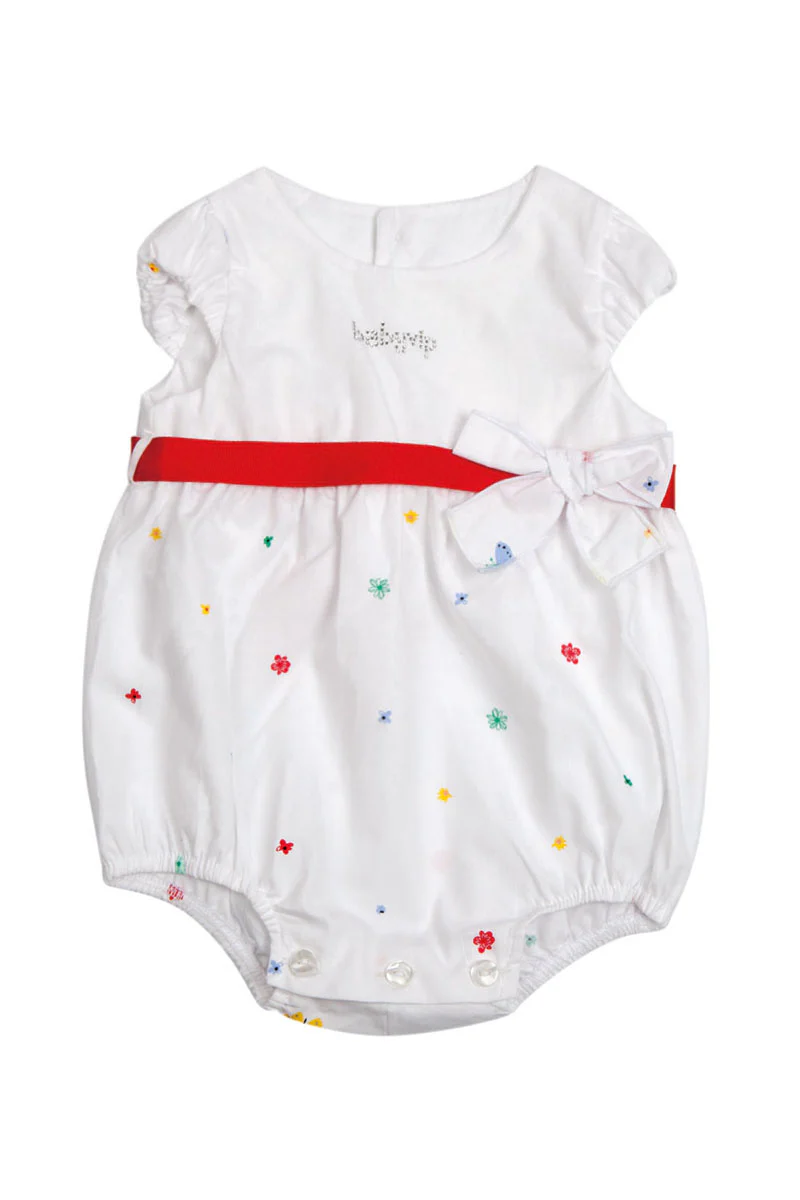 Pagliaccetto spalla larga in cotone con fiocco e strass