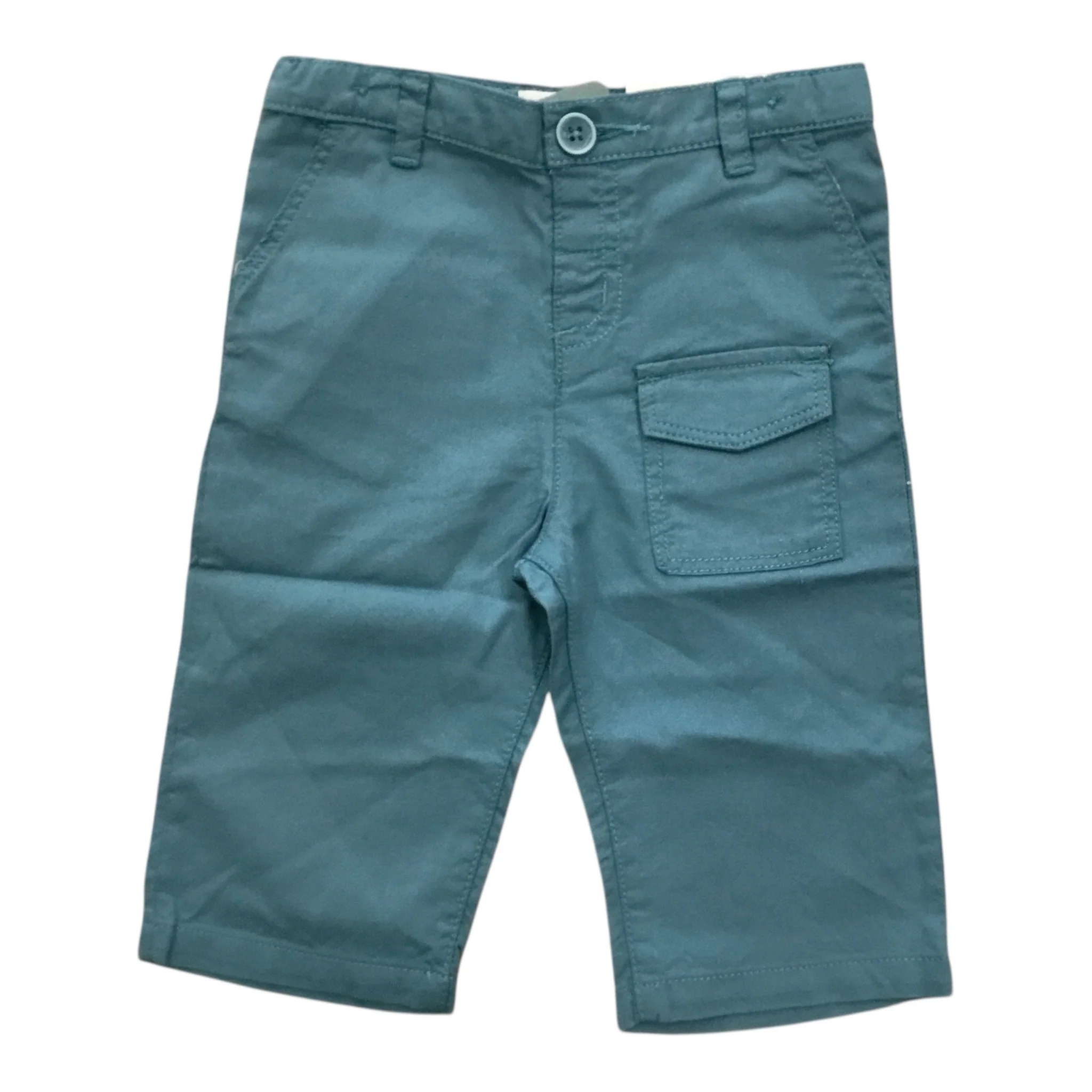 La tonalità ottanio, intensa e raffinata, rende questo pantalone facilmente abbinabile a t-shirt, camicie o felpe. Il design è arricchito da una tasca applicata che dona un tocco funzionale e casual.