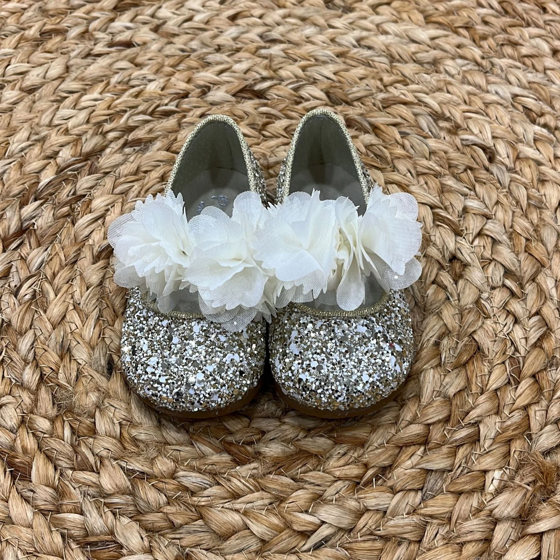 Ballerina glitter con applicazioni in organza removibili plantare anatomico e suola antiscivolo Colore: Oro Glitter