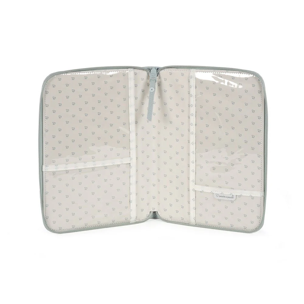 Libretto di nascita Yummi verde. Portadocumenti con tasche per custodire il libretto di nascita e tutti i documenti del tuo bambino. Si puoÌ lavare a mano o in lavatrice a 30º. I materiali utilizzati sono esenti di coloranti azoici, ftalati e sostanze nocive alla salute. Dimensioni: 19 X 27 X 2 cm.