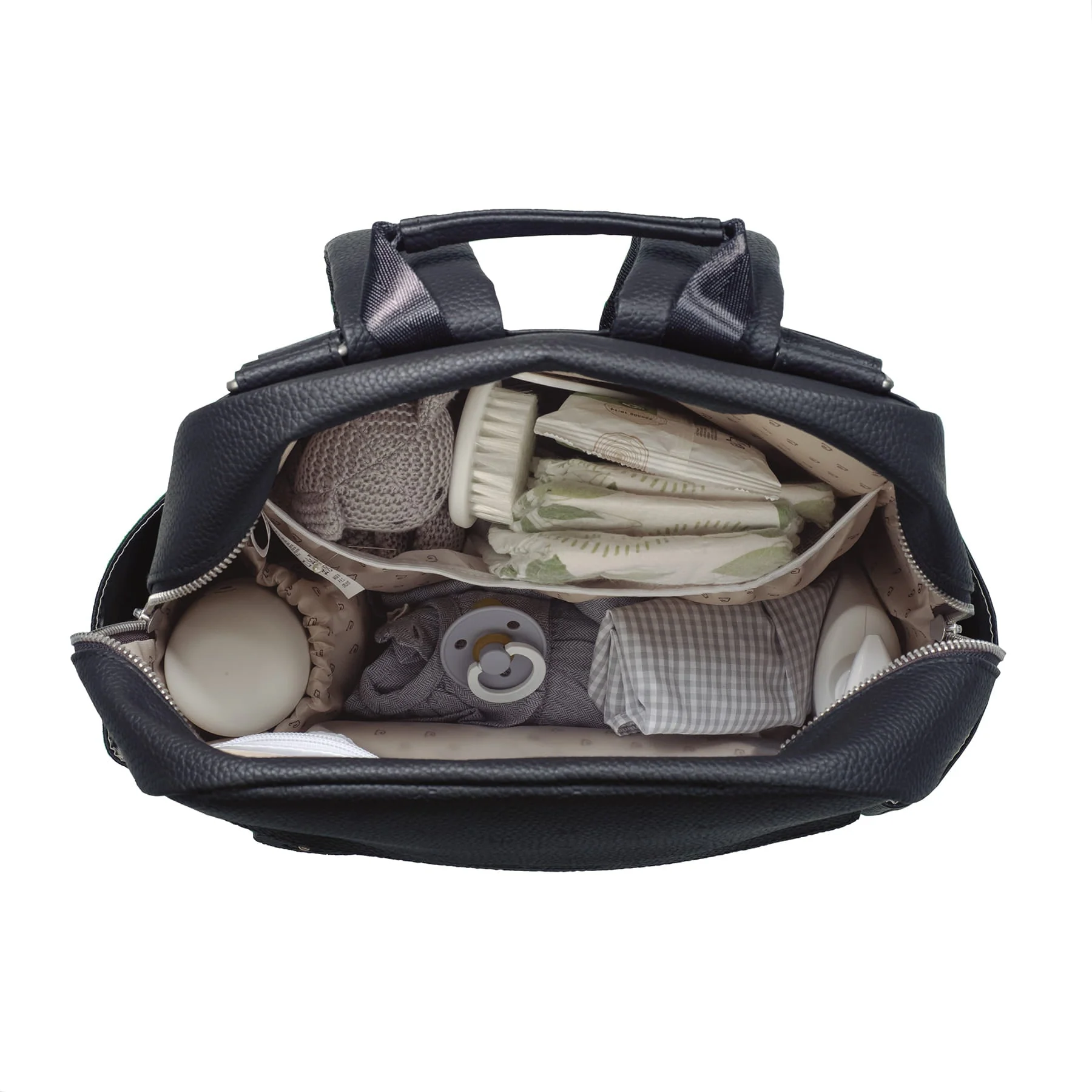 Zaino London Black di Pasito a Pasito: stile e comfort. Prova la libertà di movimento con lo zaino London Black di Pasito a Pasito. Pensato per i genitori che cercano il massimo comfort e design, questo zaino è la soluzione perfetta per trasportare tutto ciò di cui tu e il tuo bambino avete bisogno. Il suo stile moderno e la sua funzionalità superiore lo rendono l’accessorio indispensabile per la vita quotidiana, le lunghe passeggiate o le fughe fuori porta. Caratteristiche essenziali che ti conquisteranno. Design minimalista: realizzato in elegante similpelle nera granulata con stelle, lo zaino London Black presenta una finitura sofisticata. La sua silhouette compatta e moderna si adatta a qualsiasi stile. Comodità a mani libere: le cinghie imbottite e regolabili consentono di trasportarlo comodamente sulla schiena, lasciando le mani libere per prendersi cura del bambino, spingere il passeggino o godersi il momento. Massima libertà per te! Organizzazione interna ed esterna ottimale. Tasche laterali esterne: perfette per biberon, bottiglie d’acqua o piccoli oggetti che devi avere sempre a portata di mano. Ampio scomparto principale: con doppia chiusura a cerniera per una facile apertura e accesso. Tasche interne specifiche: organizza pannolini, vestiti di ricambio, giocattoli e i tuoi oggetti personali in modo ordinato e accessibile. Agganci universali per passeggino: include cinghie o agganci universali che ti consentono di appendere facilmente lo zaino al manubrio del passeggino o del carrello, trasformandolo da zaino a borsa per passeggino in pochi secondi. Materiali di alta qualità: realizzato in similpelle resistente e durevole, facile da pulire in lavatrice o con un panno umido. Mantiene il suo aspetto impeccabile anche con l’uso quotidiano. Include fasciatoio pieghevole: per una maggiore comodità, lo zaino è dotato di un fasciatoio portatile abbinato, ideale per il cambio del pannolino fuori casa. Perché scegliere lo zaino London Black di Pasito a Pasito? Per