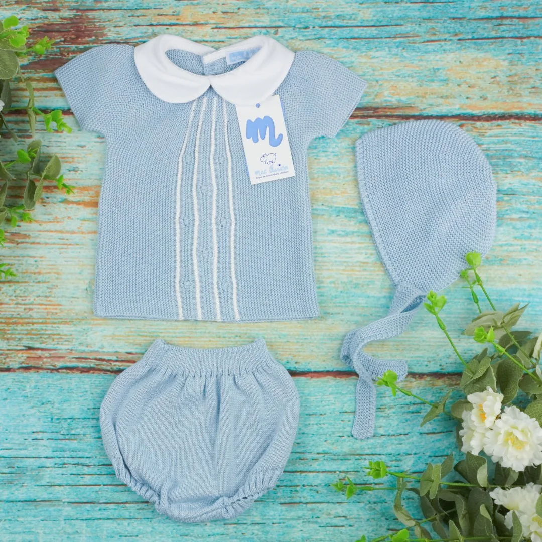 Completo composto da maglia e culottes in filo con cuffia.