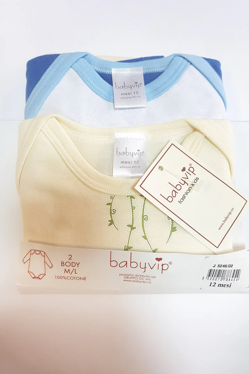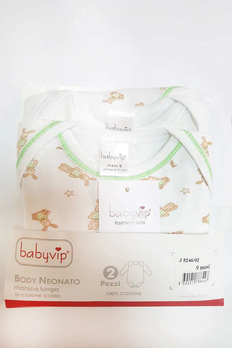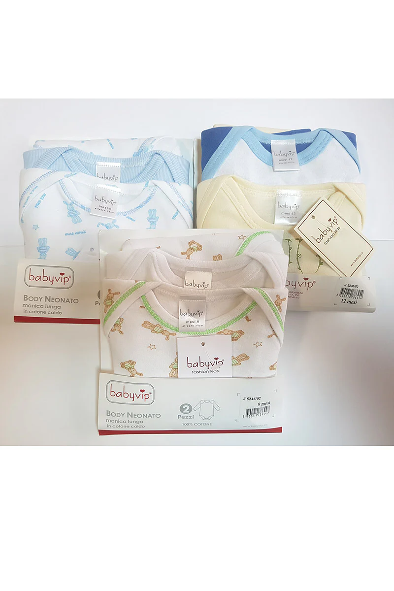 • Il body neonato BabyVip è realizzato con filati di cotone e altri materiali di elevata qualità;