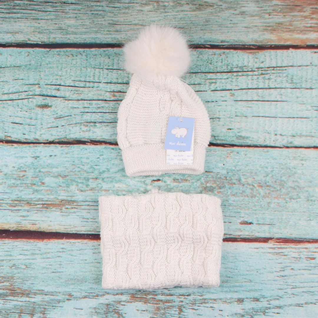 Set cappellino con ponpom e scaldacollo, in filo.