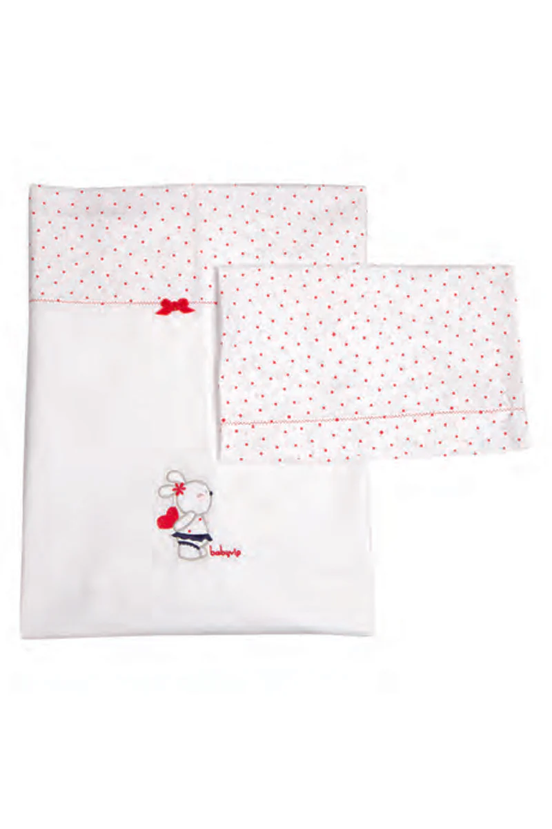- Dimensione: Federa 40 x 30 cm; Lenzuolo 90 x 120 cm; Sotto con angoli 75 x 35 cm.