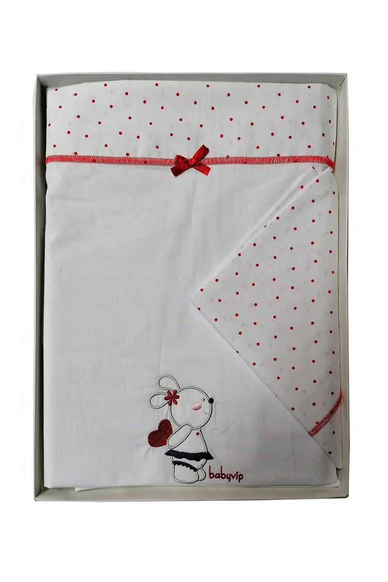 Set lenzuola 3 pezzi per carrozzina e culletta con ricamo coniglietto