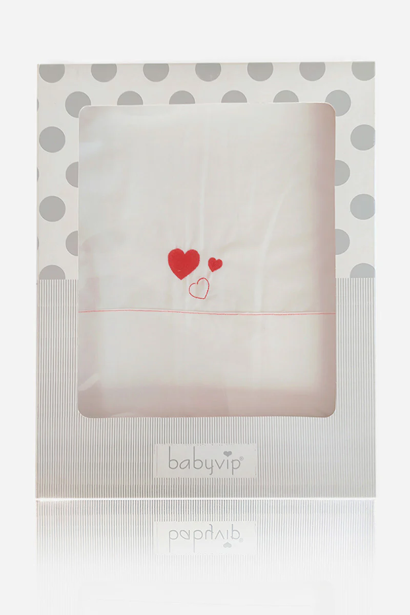 Set lenzuola 3 pezzi per carrozzina e culletta con ricamo cuori