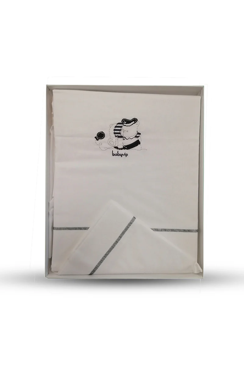 Set lenzuola 3 pezzi per carrozzina e culletta con ricamo orsetto