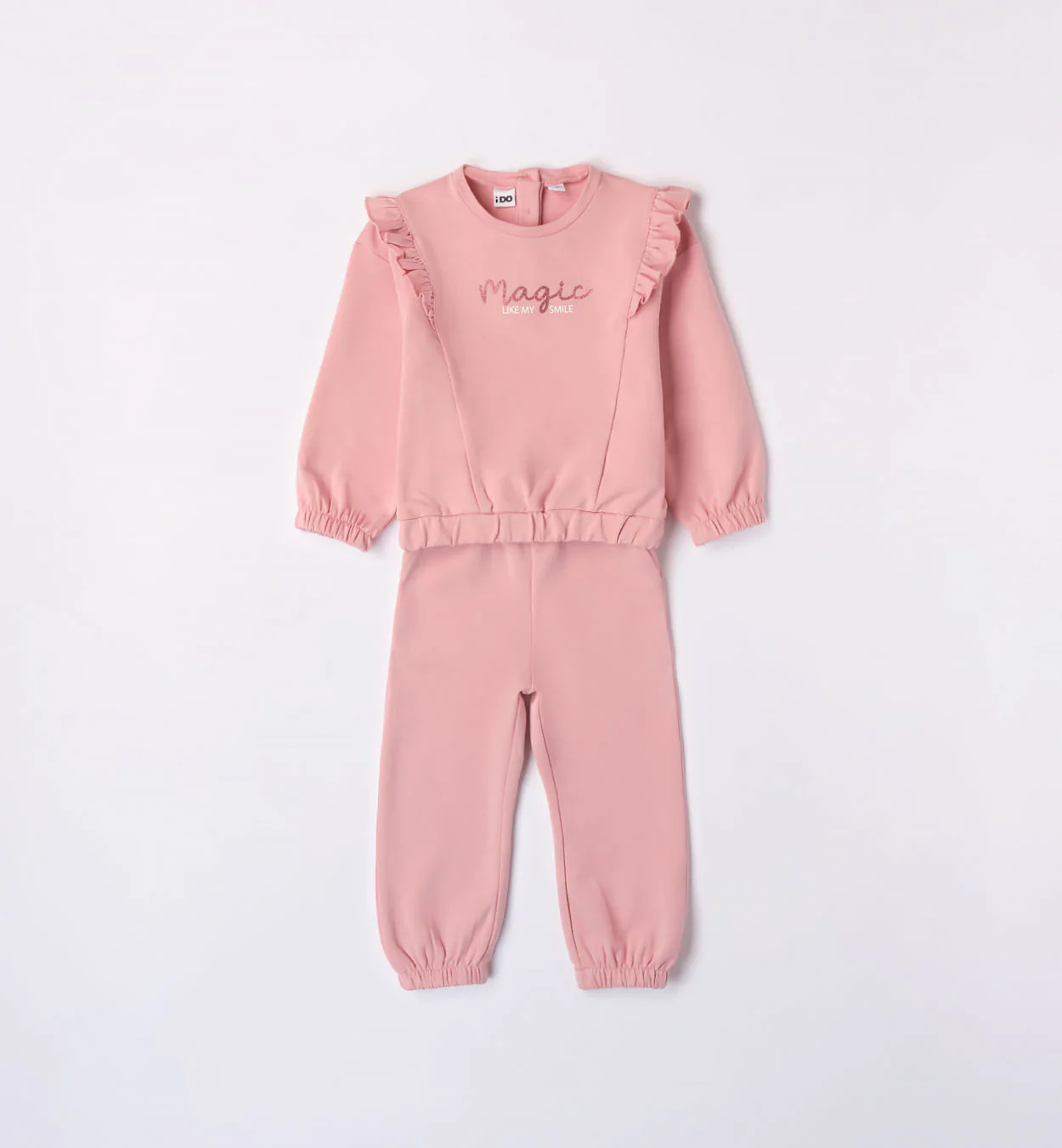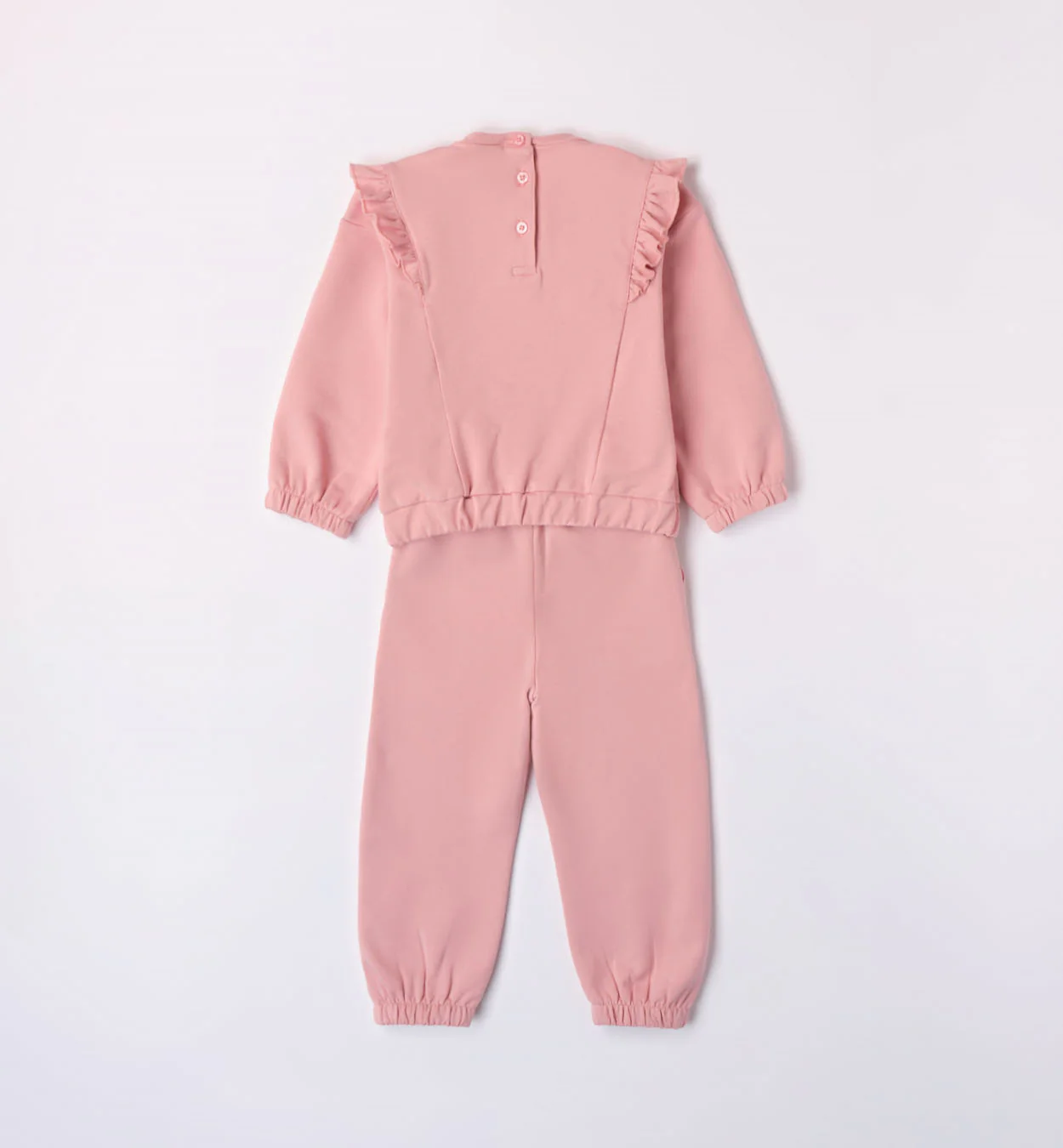 Tuta Jogging composta da Felpa girocollo con apertura dietro con bottoni a scatto e Pantalone Tuta con elastico alla vita a tinta unita. In Felpa Stretch. Composizione: 95%CO 5%EA Linea: Simply Rose Articolo: 47531 BRAND – iDO Guida alle taglie