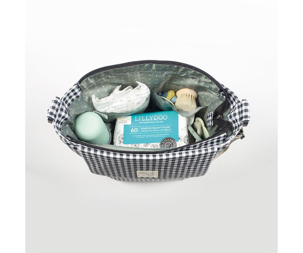 Borsa per passeggino I Love Vichy nero, moderna, sportiva e urbana. È compreso fasciatoio. Borsa fasciatoio leggera, forte e di grande capacità per trasportare tutto il necessario per il tuo bambino. Dispone di utili tasche in modo da avere tutto in ordine. La borsa ha un sistema d’attacco universale con una manica lunga regolabile per appendere alla spalla che include 2 manici corti regolabili per appenderla in qualsiasi modello di passeggino.Walking Mum protegge il vostro bambino utilizzando i migliori tessuti. I materiali utilizzati sono esenti di coloranti azoici, ftalati e sostanze nocive alla salute. Dimensioni: 41X34X12 cm. Borse cambio Walking Mum.