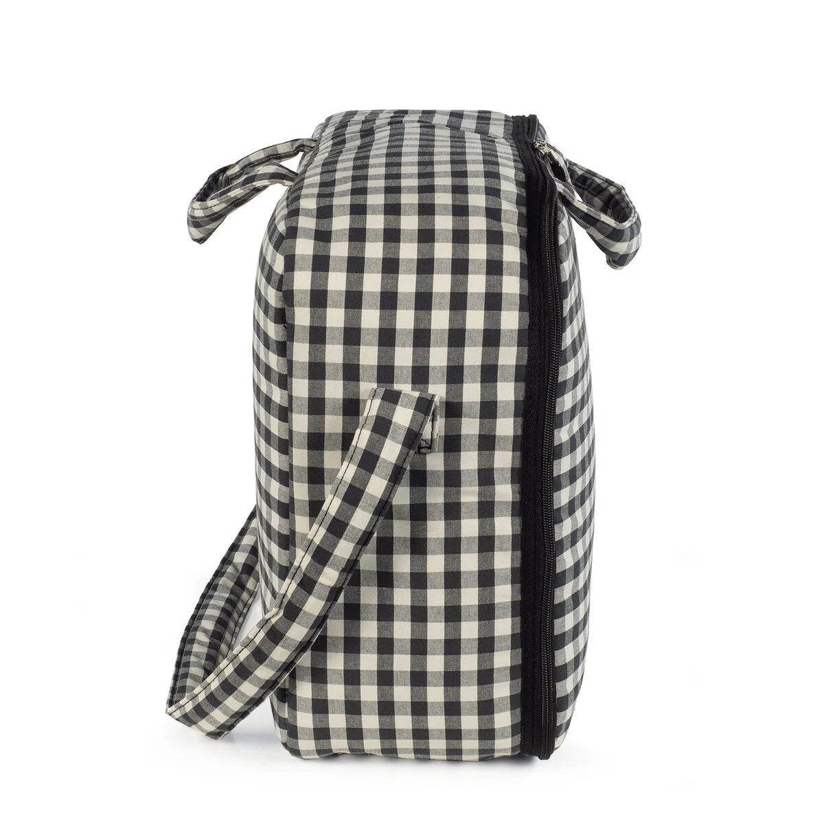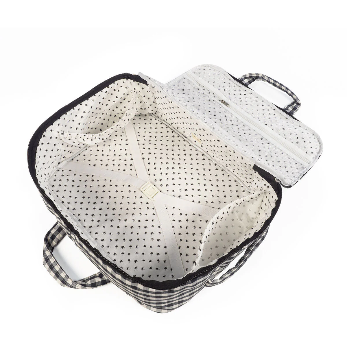 Valigia per andare in clinica Remy a quadretti XL nero. Borsa per andare all’ospedale/clinica ideata specialmente per portare tutto quanto serve a te, al papà e al bambino. Grazie alle dimensioni rettangolari e alla pratica apertura, saranno coperte tutte le tue necessità. Include manica lunga per portarla alla spalla. Walking Mum protegge il vostro bambino utilizzando i migliori tessuti. I materiali utilizzati sono esenti di coloranti azoici, ftalati e sostanze nocive alla salute. Dimensioni: 49X37X17 cm.