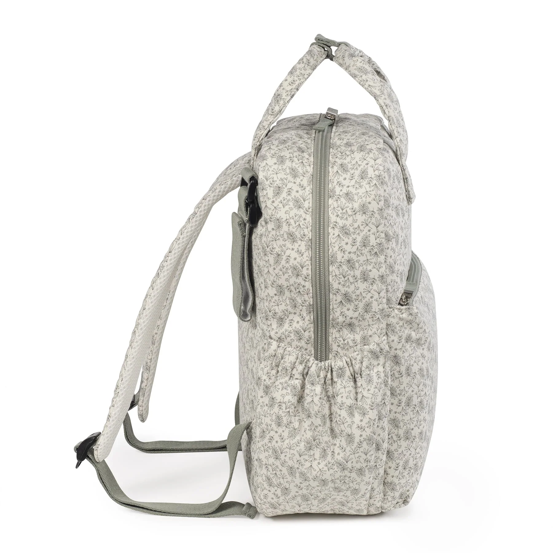 Zaino ideale per trasportare le tue cose e quelle del tuo bambino con stile durante tutte le vostre passeggiate. Lo zaino Gala Mint con stampa floreale è realizzato in 100% cotone con trattamento impermeabile. Lo zaino per passeggino è un modello multifunzionale molto leggero, resistente e capiente per trasportare tutto il necessario durante le passeggiate. La sua struttura offre 3 tasche esterne e 4 interne per tenere tutto in ordine e a portata di mano. All’esterno ha una tasca frontale con chiusura a zip e due tasche laterali per biberon o bottiglie. All’interno ha una tasca plastificata per i vestiti bagnati, una tasca termica per biberon e due tasche per tutto ciò che devi avere a portata di mano. Include un fasciatoio abbinato alla borsa per la maternità. La borsa include 2 manici corti regolabili che facilitano il posizionamento su qualsiasi modello di passeggino, manici e cinghie imbottite per appenderla sulle spalle, senza creare fastidio a causa del peso. Grande qualità e molto stile. Realizzata in 100% cotone con trattamento impermeabile, facile da pulire, può essere lavata a mano o in lavatrice. Walking Mum protegge il tuo bambino utilizzando i migliori tessuti, privi di coloranti azoici e sostanze nocive per la salute. La nostra collezione Walking Mum mantiene tutta la qualità del marchio Pasito a Pasito, ma con un particolare tocco di stile urbano e moderno che non passa inosservato, per vestire in modo diverso le passeggiate con il tuo bambino. Le borse per la maternità di questa linea sono più sportive e pratiche, pensate appositamente per mamme e papà moderni che apprezzano i design più attuali e di tendenza senza rinunciare alla qualità e alla funzionalità degli accessori che completano e rendono più comode tutte le passeggiate con i loro bambini. Specifiche: Materiali: 100% cotone. Misure: 37X28X13 cm.